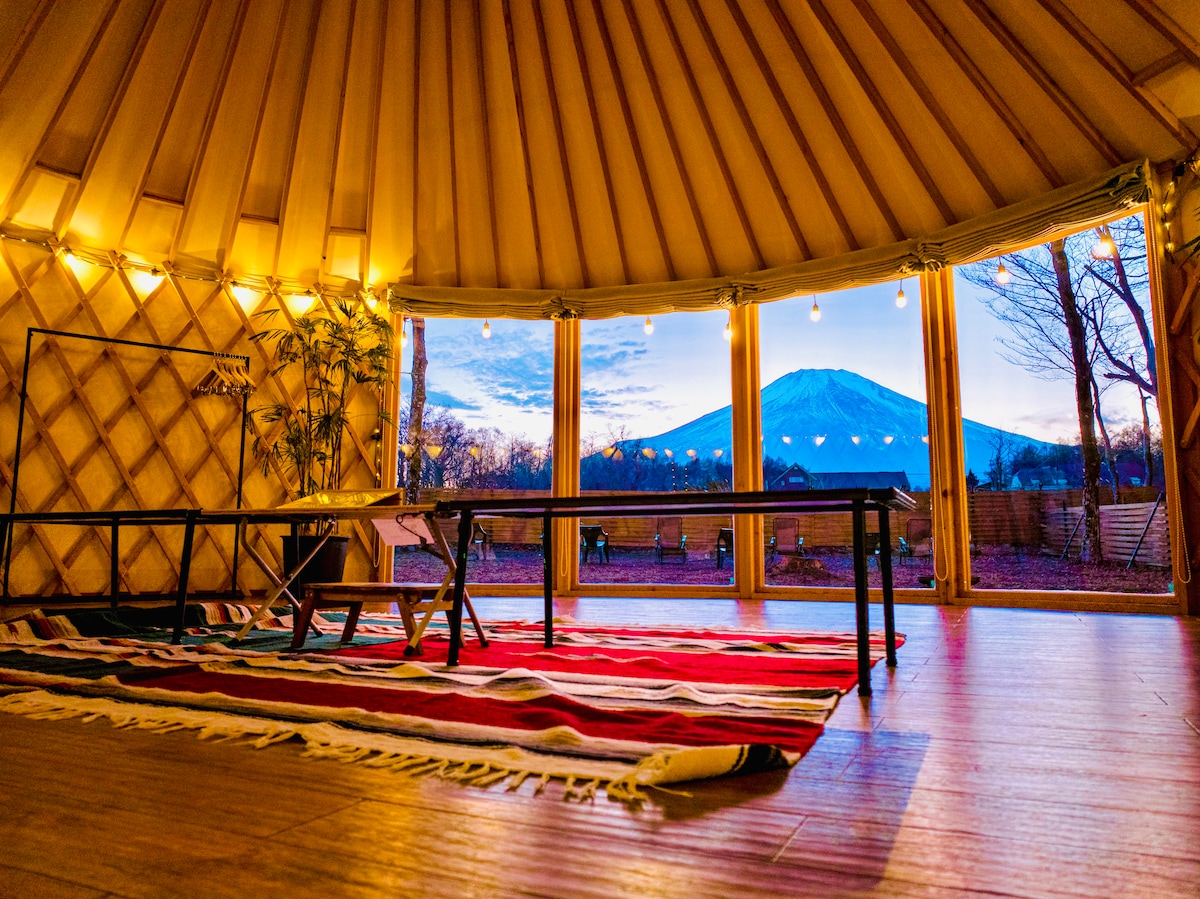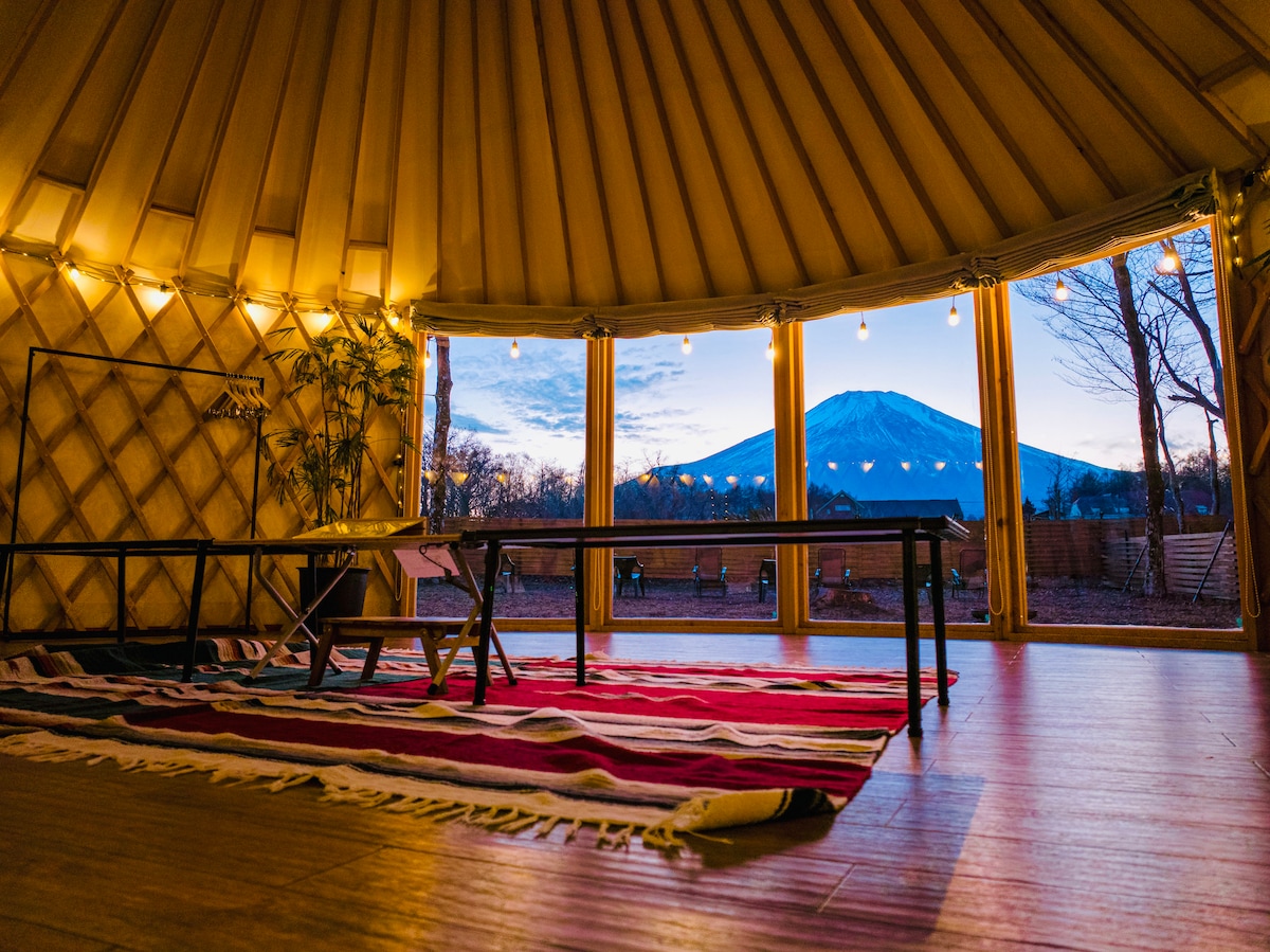 Yourte dans les montagnes/Mont Fuji et vue sur le lac