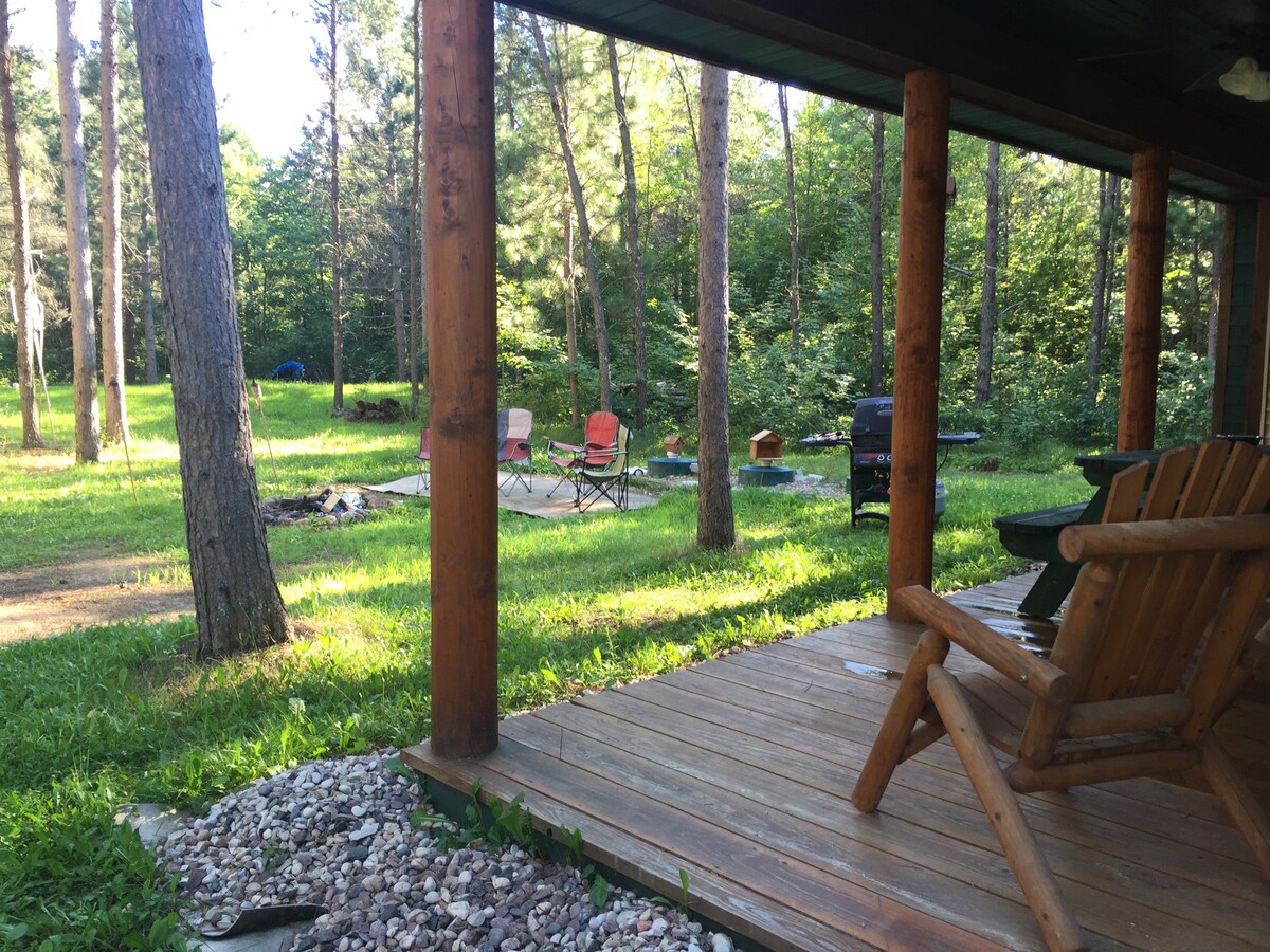 Idéalement situé surplombant l'eau, notre paisible cabane de 2 chambres est située directement sur les eaux du Johnson Falls Flowage. Parfait pour les amoureux de la nature qui aiment le calme paisible des bois du nord. Faites du kayak, pêchez ou asseyez-vous au bord de l'eau directement depuis les rives du chalet. Nous sommes proches de nombreux parcs d'État et de comté, de rampes de mise à l'eau, de sentiers pour VTT/motoneige et plus encore ! Le foyer offre un divertissement sans fin. La nature regorge de cerfs, de dindes, d'aigles, d'ours et bien plus encore !