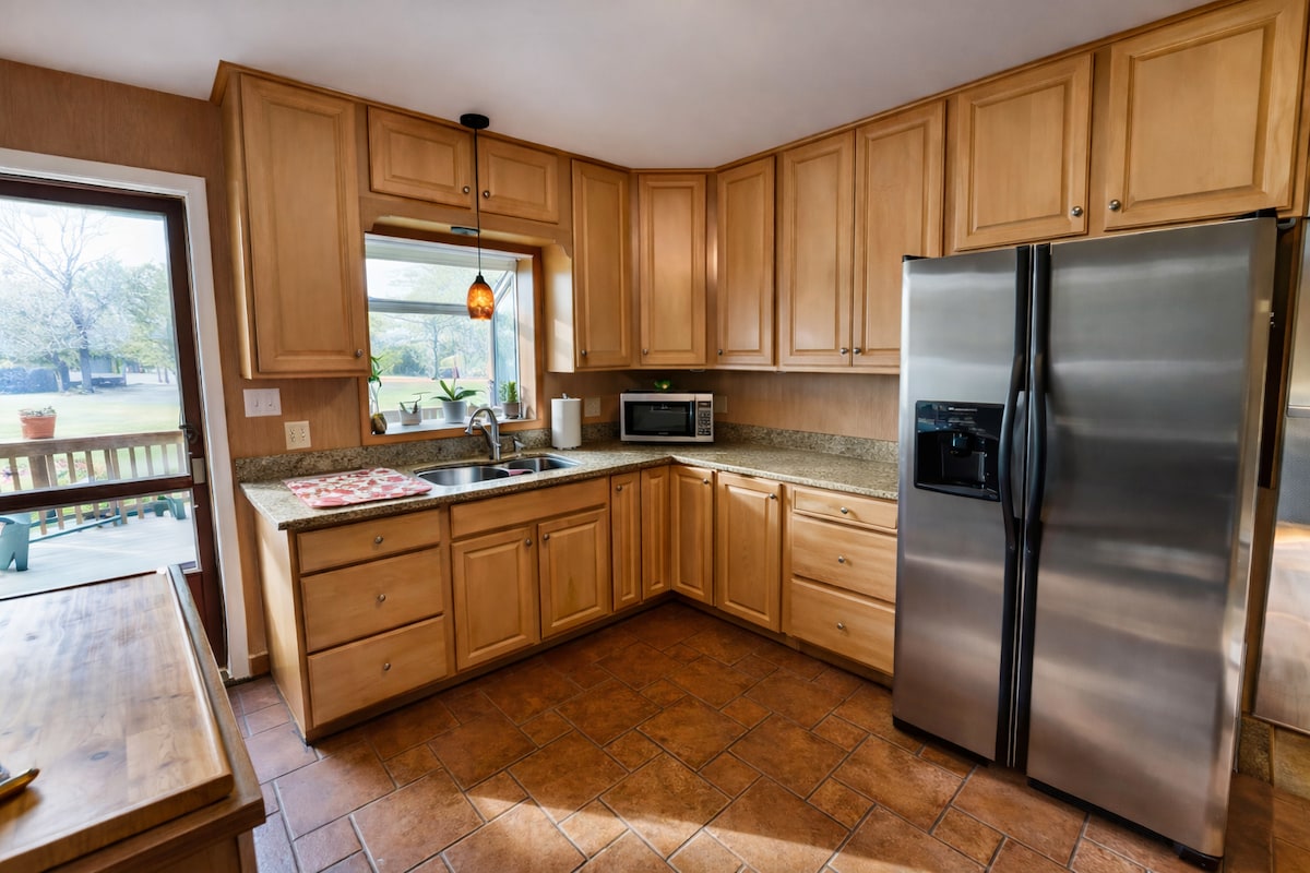 Cette propriété se trouve sur un terrain boisé de 6 acres, avec beaucoup d'intimité et de vie sauvage. Il s'agit d'un ranch de style mère/fille où l'entrée de la propriété est une longue route sinueuse menant à un immense parking ouvert. La porte d'entrée mène à un plan d'étage ouvert qui comprend un tout nouvel espace de vie meublé, un coin repas et une cuisine avec tous les nouveaux appareils. Un rucher enregistré se trouve sur la propriété. Cet AirBnB a été fraîchement rénové pour inclure du nouveau matériel, de nouvelles décorations et une nouvelle peinture !