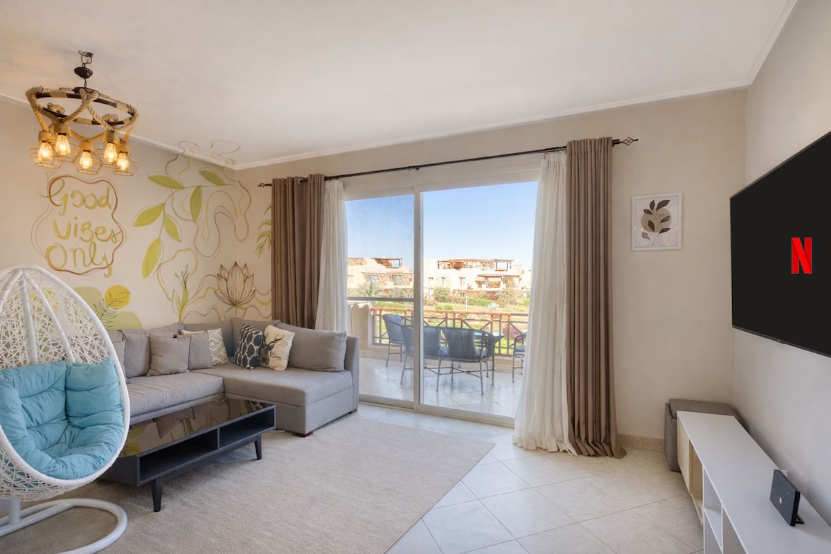 Détendez-vous en famille dans cet endroit paisible où séjourner dans la station balnéaire rouge de Cornado marina 20 minutes après Portosokhna Directement sur la mer et la piscine entièrement climatisé wifi iptv sur smart 55'' tv également télévision en plein air Vue imprenable sur la mer avec diffusion d'air, snorkeling et pêche 2 chambres et 2 salles de bains Avec terrasse et jardin privés Supermarchés, cafés et restaurants à l'intérieur du complexe hôtelier, directement au bord de la mer. pharmacies et restaurants à proximité.