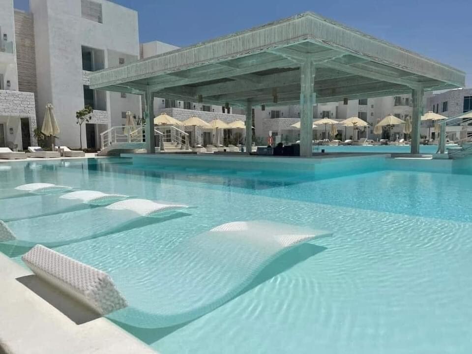 Stay in the luxury stylish 4-bedroom villa in Azha with a double private garden with stunning pool & crystal-lagoon views Enjoy luxury furniture, high-speed WiFi, 2 Smart TVs, premium sound system, and full A/C. The smart kitchen has a microwave, dishwasher, laundry washer, air fryer, stove and oven, and large fridge. With 7 comfy beds this villa is perfect for families seeking a relaxing, upscale escape extra 1500 L.E for person during the whole period of host up to 1 week(for beach access)