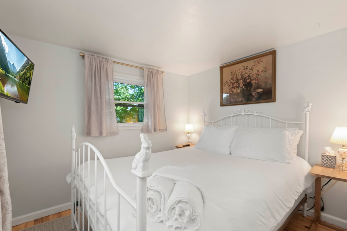 This quiet, light-filled cottage is designed as a restorative retreat — a place to slow down, rest deeply, and reconnect. Lovingly renovated with warmth and understated elegance, the home offers cozy bedrooms, a soaking tub, private hot tub, and tranquil garden spaces front and back. Ideal for guests seeking a peaceful, contemplative stay with easy access to Old Town shops, nature trails, and local cafés. A calm, welcoming sanctuary for rest, reflection, and gentle renewal.