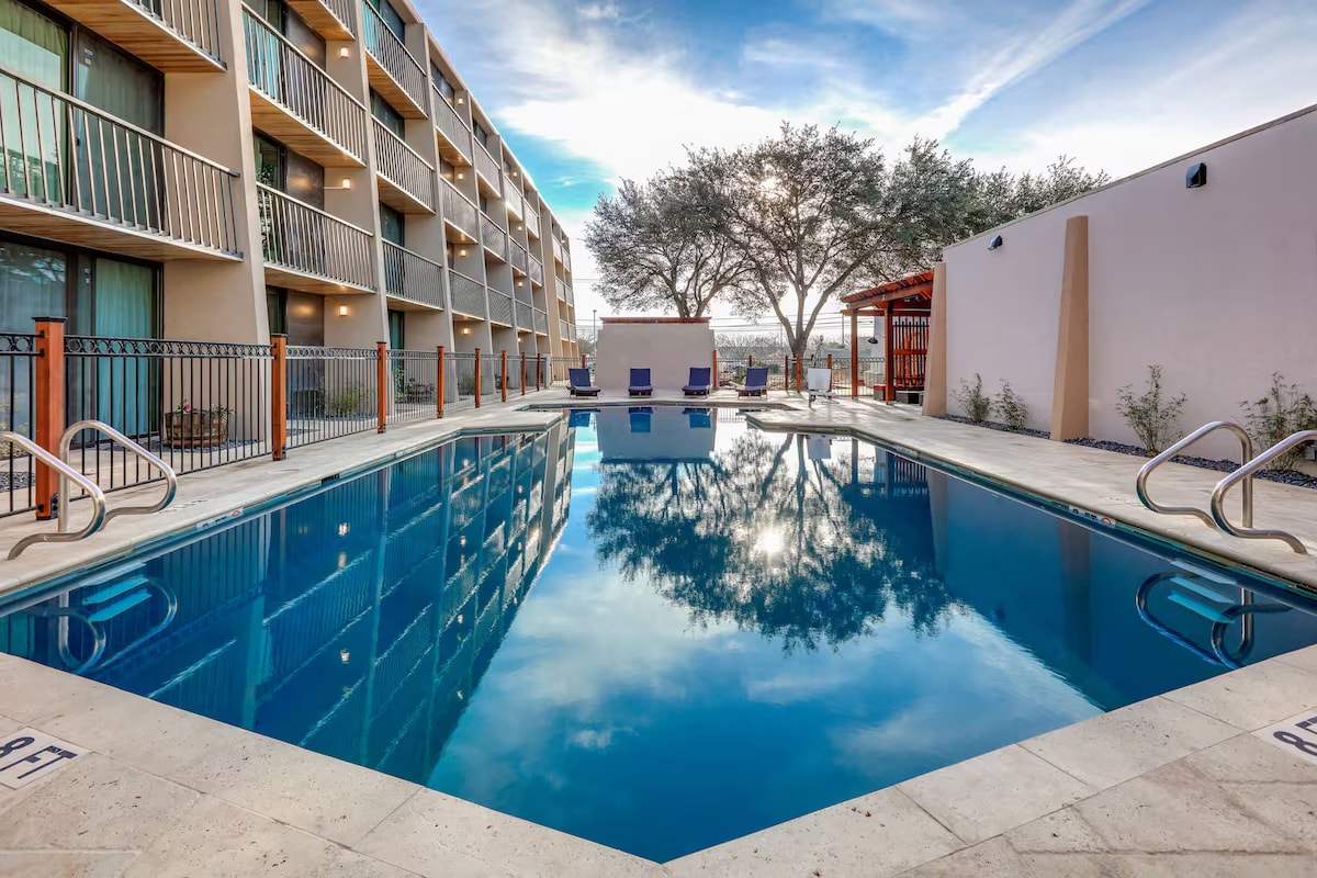 Près de l'Université du Texas Austin + piscine. Bar. Petit déjeuner.
