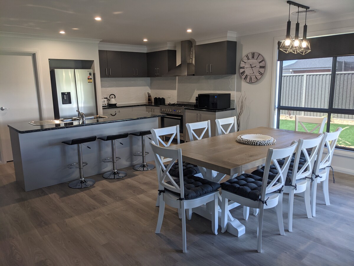 Construite par la famille Burgess vers 1892, la Burgess House est une maison rénovée de trois chambres qui a été déplacée de Burgess Street. De larges vérandas et des portes coulissantes à double vitrage relient l'intérieur et l'extérieur, offrant une excellente isolation avec la climatisation en complément. Avec une vue élevée sur un cadre rural, la maison Burgess est entourée d'oiseaux indigènes et de brousse. À 5 minutes en voiture du quartier des affaires et à 8 minutes en voiture de l'UNE, c'est une retraite tranquille qui est proche de tout.