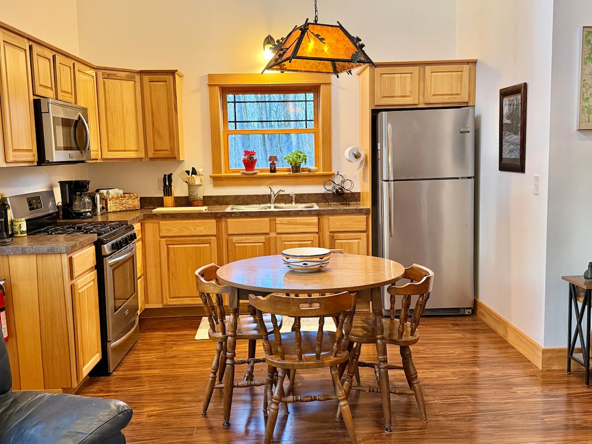 Bienvenue au Hideaway Cabin, où vous pourrez vous détendre dans l'étreinte de la nature. Ici, vous pouvez faire griller vos plats préférés sur le gril, vous prélasser dans les chaises Adirondack sur le balcon ou simplement vous détendre à l'intérieur. Le soir, rassemblez-vous près du foyer sur le porche pour regarder les lucioles danser ou détendez-vous dans le jacuzzi sur le porche arrière. C'est le mélange idéal de sérénité naturelle et de confort chaleureux. En hiver, installez-vous confortablement près du poêle à bois dans le séjour et regardez vos émissions de télévision préférées.