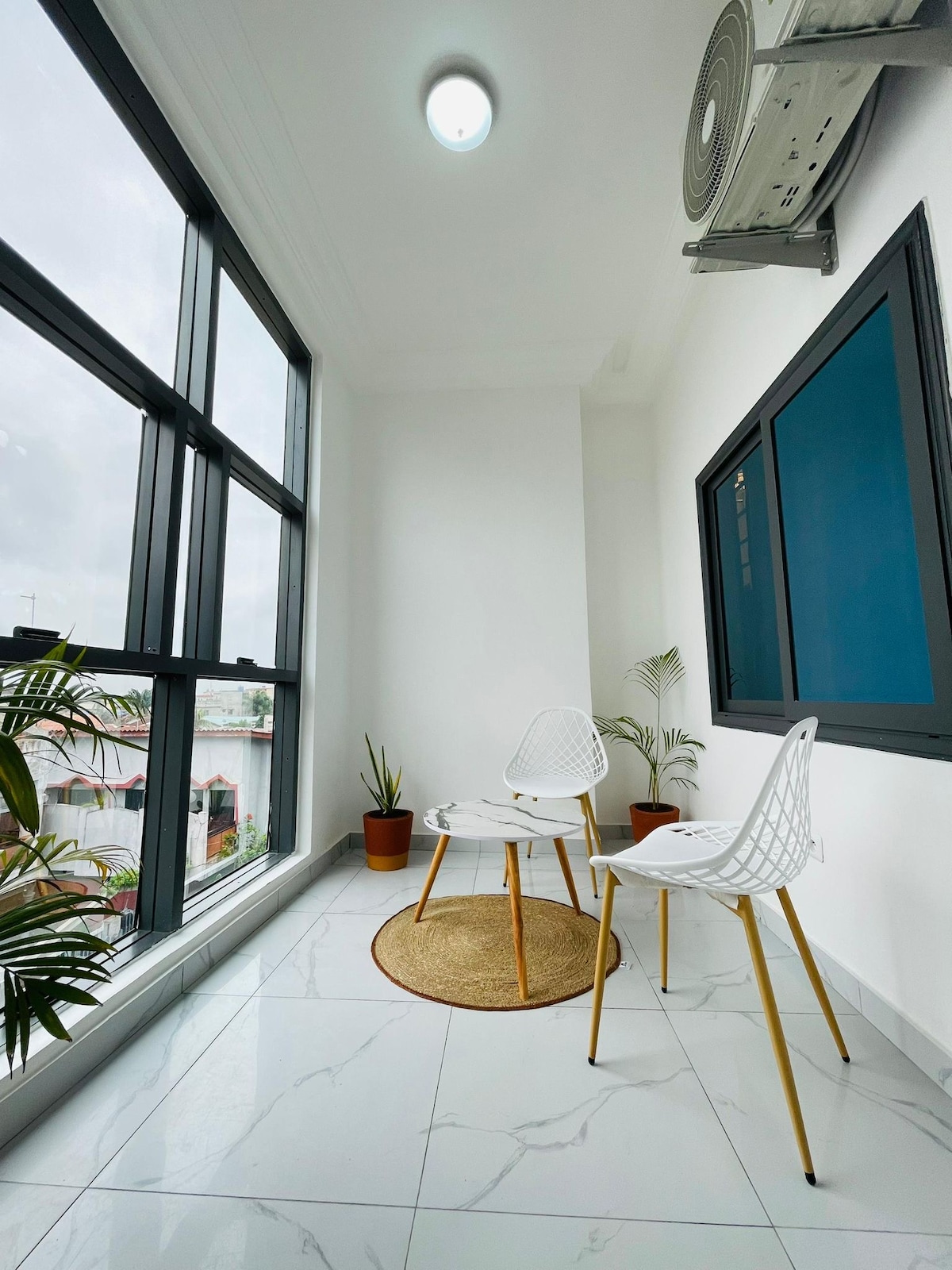 Si vous recherchez un apart en pleine ville qui allie esthétisme et fonctionnalité, Abikè est sans aucun doute, le logement qu'il vous faut. Situé à 2 min de la place de l'Etoile rouge, Abiké est parfaitement équipé, entièrement climatisé avec une connexion wifi très efficace (fibre optique). L'un des gros avantages de cet apart est indéniablement sa proximité avec plusieurs commodités: Supermarché, marché moderne, restaus, pressing, salle de cinéma, guichets automatiques, etc... Alors?!! .....