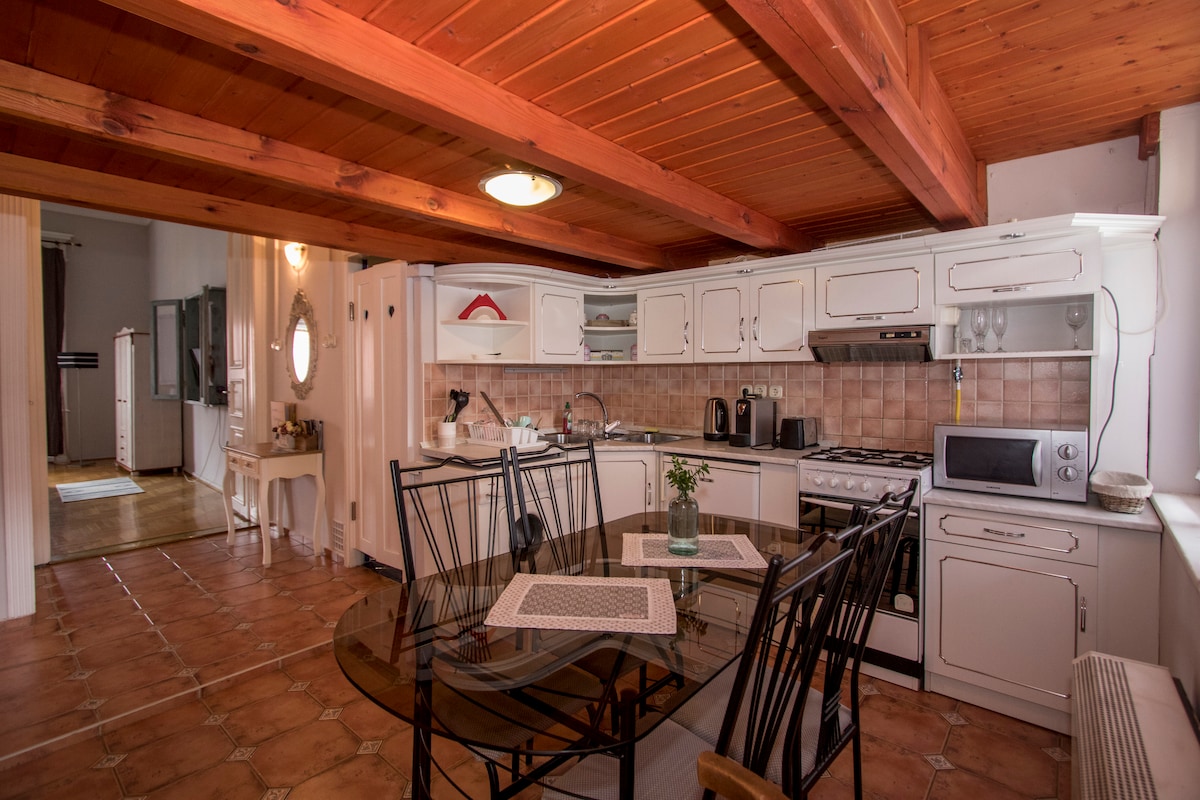 L'appartement est situé dans une rue calme du centre-ville, idéalement situé pour un accès facile à tout. Meublé avec goût pour créer une atmosphère chaleureuse et refléter l'atmosphère des maisons du centre-ville d'il y a 100 ans. Le Wi-Fi et la climatisation sont gratuits et la cuisine est bien équipée. Les matelas de la chambre sont confortables, avec du linge frais et des oreillers moelleux. Bien que le propriétaire soit amical, vous pouvez utiliser le service sans rendez-vous.