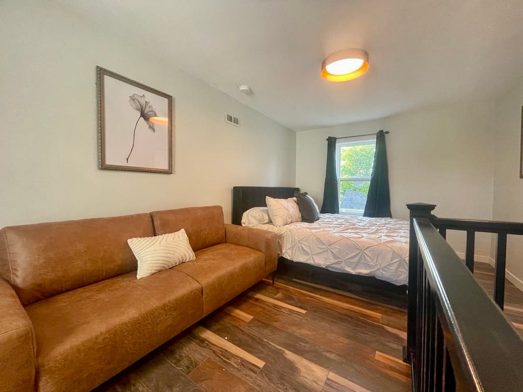COMMENCEZ À FAIRE PASSER LE MOT!! Séjournez à Moncton, mais ressentez l'ambiance de New York. 🌆Ce bel appartement d'une chambre rend hommage à New York. Cet appartement privé est l'un des deux qui sont situés au 2e étage dans une maison calme. Idéalement situé entre les deux hôpitaux, à quelques minutes du centre-ville, de l'université et à proximité des principales attractions touristiques. Cet appartement non-fumeur comprend tout ce dont vous avez besoin : articles de toilette, serviettes, draps, ustensiles de cuisine, vaisselle, cafetière Keurig et bien plus encore. Vous avez même votre propre petite terrasse.