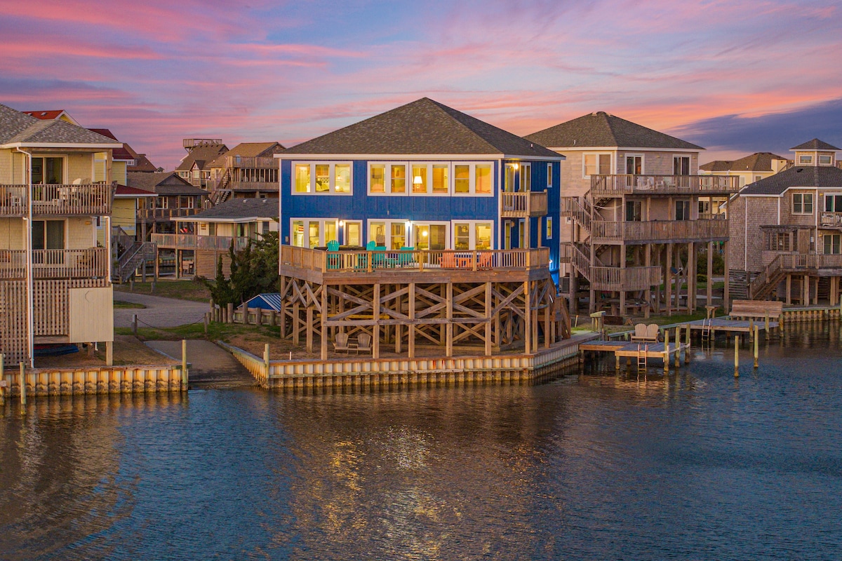 Tout est à portée de main lorsque vous séjournez dans cette maison en bord de mer située au centre-ville. Au cœur d'Avon, à seulement quelques pâtés de maisons des magasins, des restaurants, de la jetée d'Avon et plus encore, avec un accès facile à pied et à vélo à tout. Profitez de la belle vie dans cette nouvelle construction construite en 2022 et détendez-vous avec une vue sur le coucher du soleil sur le Pamlico Sound, un accès direct à l'eau depuis la propriété avec des kayaks et des planches à pagaie fournis, et les propriétaires de bateaux/skis peuvent garder les navires attachés dans le canal protégé à l'arrière !