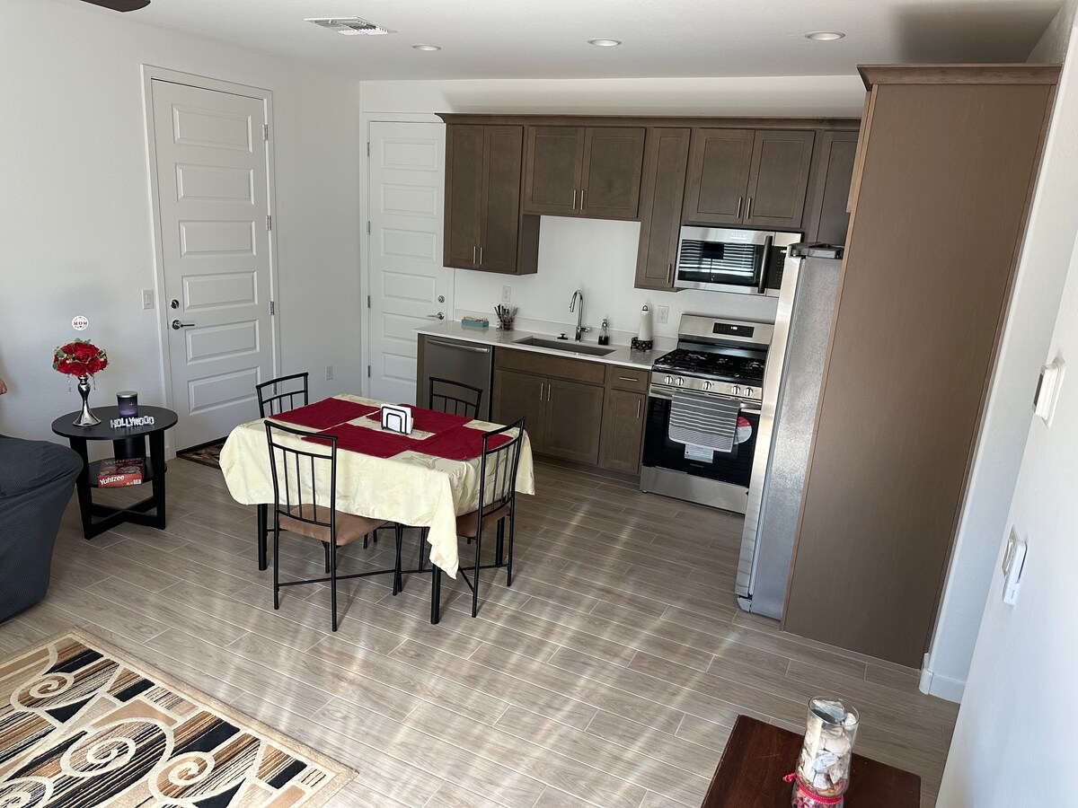 Logement entier privé et indépendant avec chambre complète, 1 salle de bain, cuisine et salon combinés, grand îlot pour manger ou travailler, cuisinière à gaz, grand réfrigérateur, lave-vaisselle, grande télévision (avec chaînes Cox Cable), Wi-Fi gratuit et plus encore. Utilisation facultative du garage privé pour 1 voiture avec accès direct à l'unité. Matelas pneumatique en option (plein ou double) pour voyageur ou enfant supplémentaire. Bons restaurants et magasins, cinéma, stade de football des Cardinals, pistes de course et de randonnée et plus encore - tout à proximité.