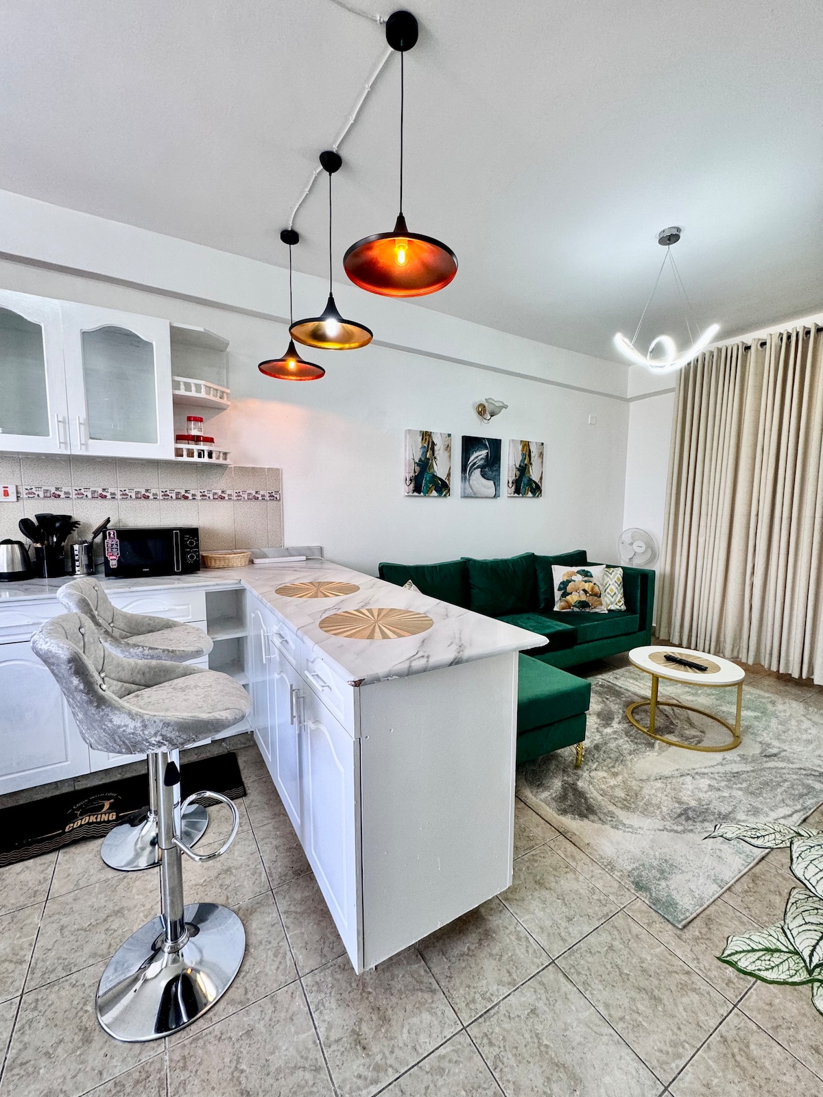 Situé au cœur de Milimani, communauté fermée sereine et paisible de Pipeline Estate. Parking sécurisé gratuit. À 3 min en voiture du quartier des affaires, du centre commercial West End, de TuffMall, des supermarchés et d'autres commodités sociales. Le quartier est idéal pour les joggings/promenades du matin et du soir. À 5 minutes en voiture de la plage de Dunga et du camp de Dunga Hill. Wifi, Showmax et Netflix disponibles. Cuisine entièrement équipée avec des appareils modernes.