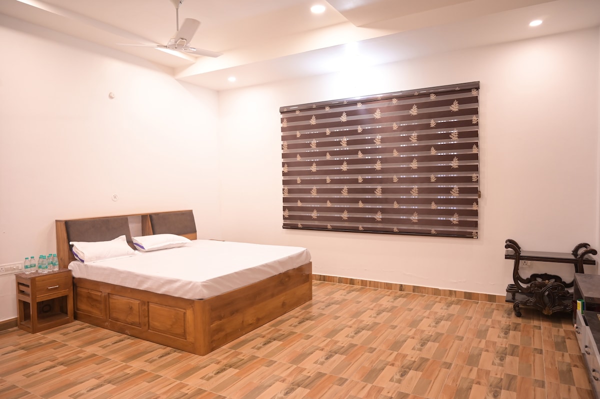 Welcome to The Saryu Vatika Homestay, Ayodhya — a third-generation family home on Rampath, lovingly built in 1990 and newly refurbished for modern comfort. This cozy 4-bedroom, 3-bathroom ground-floor bungalow offers AC rooms, Wi-Fi, Smart TVs, a kitchen for making tea/coffee, and gated parking. Enjoy full home-cooked meals by our in-house cook on nominal charges. With a 24×7 caretaker and close proximity to Ayodhya Airport, it’s your perfect home away from home.