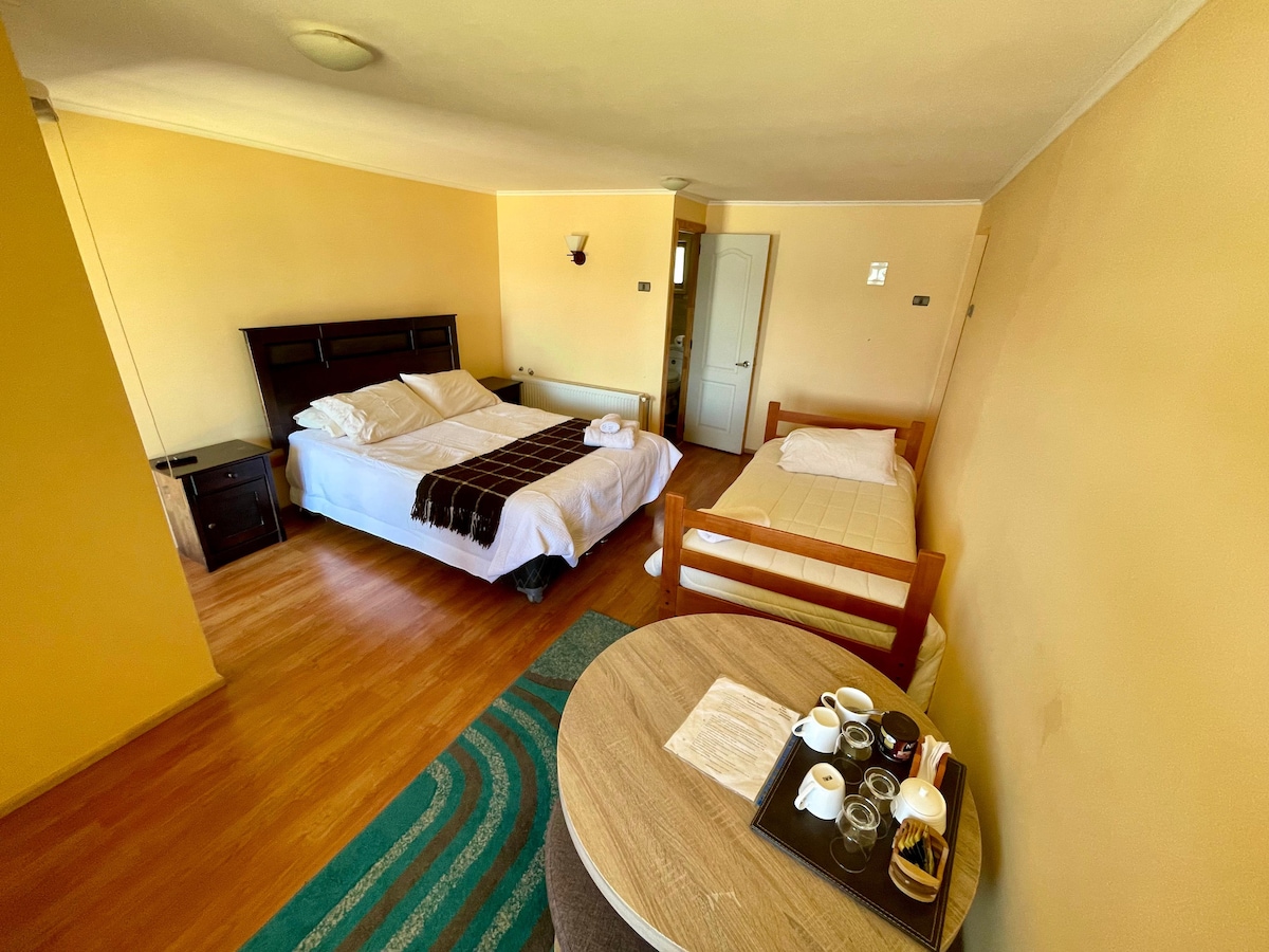 Situé à Puerto Rio Tranquilo, dans un emplacement central, à proximité des commerces, de la place, des services touristiques, de la gare routière et à un pâté de maisons du lac General Carrera. L'appartement dispose d'un environnement, avec une capacité de deux personnes et dispose de : une salle de bains privée (sèche-cheveux, savon, serviettes, papier toilette et eau chaude), un lit double, il n'y a pas de cuisine, cependant, il y a un espace où il y a un lave-vaisselle, un lave-vaisselle, un service, un four à micro-ondes, un minibar, un grille-pain électrique et une bouilloire.