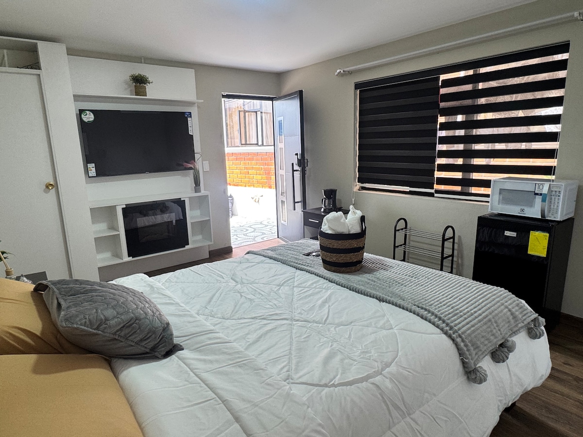 Elegant loft with quality finishes, perfect for executives/travelers seeking maximum security and comfort. Near Quinta Lucrecia, Mall del Río, Supermaxi. Includes: -Daily Gourmet Breakfast (fresh juice, 2 eggs, toast). Served at your door (8-10 am). Not available on Sundays -WiFi 6. -Secure Garage. -Smart locks, 65" Smart TV, electric fireplace. -Courtesy: Towels, shampoo, body wash. -Premium location, comfort, and security guaranteed! (Please avoid using towels for makeup removal).