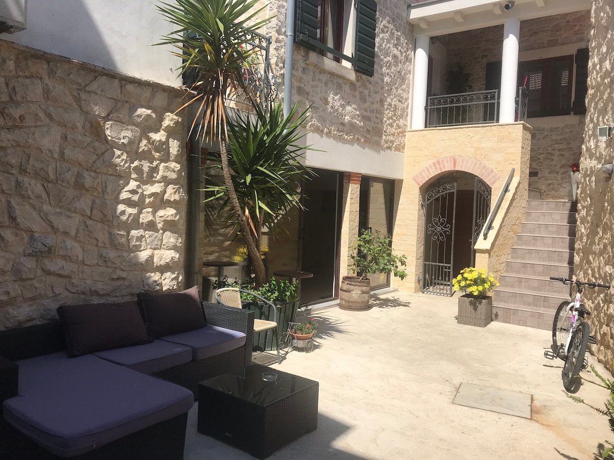 grand studio situé au rez-de-chaussée d'une propriété en bord de mer qui a la mer adriatique comme arrière-cour, tandis que l'appartement est à l'avant de la propriété votre balcon n'a pas de vue sur la mer, mais vous êtes à seulement mètres de la mer.