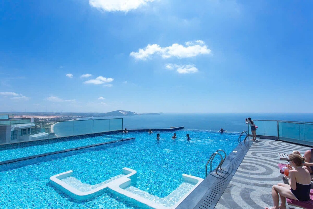 Chambre Deluxe avec lit King Size et vue sur la mer et la montagne Réveillez-vous avec une vue imprenable sur l'océan et des montagnes majestueuses. Profitez d'une chambre spacieuse de 35 m² avec un lit Super King, une télévision connectée, une connexion Wi-Fi haut débit et une cuisine entièrement équipée. Profitez de notre piscine à débordement sur le toit, du petit-déjeuner buffet et du service en chambre 24h/24. Idéalement situé à quelques minutes des dunes de sable de MУi Né, de Bàu TrУng, du Fairy Stream et du village de pêcheurs animé. Idéal pour les couples, les familles ou les voyageurs en solo à la recherche de luxe et de détente.