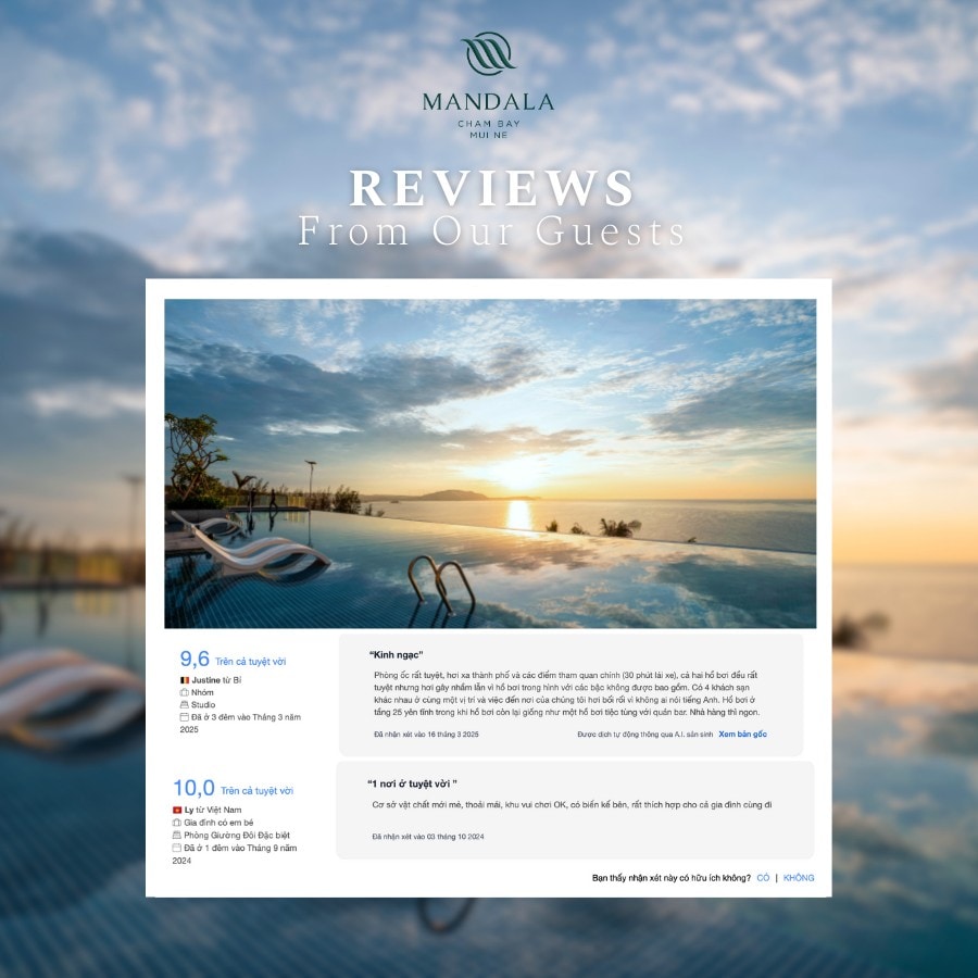 Renouez avec vos proches dans ce logement familial. Façade pleine vue mer 180o. Avec 2 chambres avec la plus belle vue sur Mui Ne. Le salon et la table à manger familiale sont pour 4 à 6 membres. Un balcon pour profiter du thé. Climatisation de chaque chambre et espace. La cuisinière à induction cuisine les aliments pour la famille.