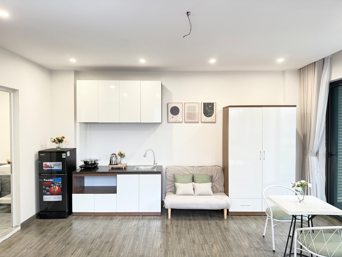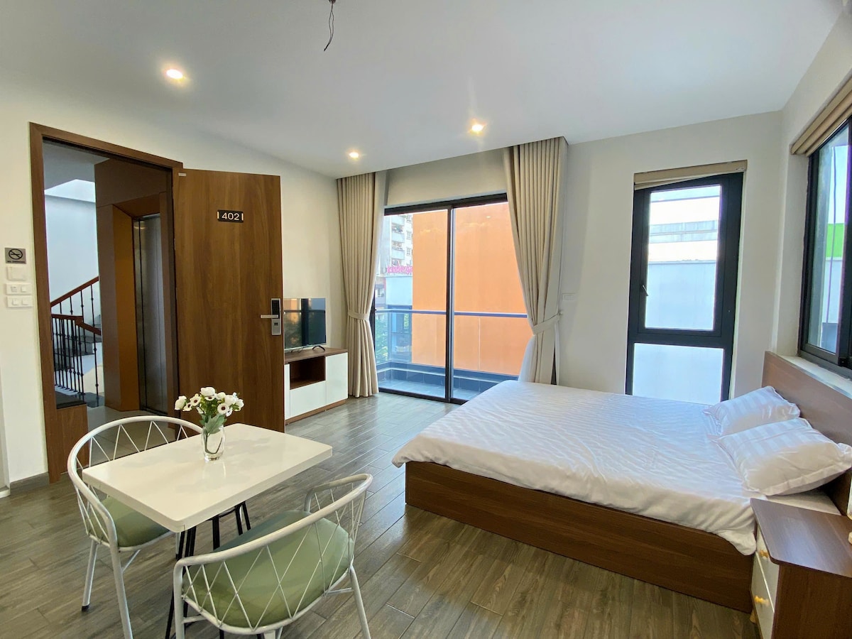 *Nous sommes Rosemary Homestay. Nous espérons vous accueillir prochainement dans l'un de nos 25 hébergements à Hanoï* Récemment studio à louer avec une bonne qualité dans la rue Hoang Quoc Viet, Hanoï. Accès en voiture. Mon appartement est à environ 8 km du lac Hoan Kiem et à 30 minutes en voiture de l'aéroport de Noi Bai. À 3 minutes de Hoa Binh International Towers and E Hospital. Il y a beaucoup de mini-marchés, de banques, de cafés et de restaurants autour. Un arrêt de bus se trouve juste à côté de l'allée.