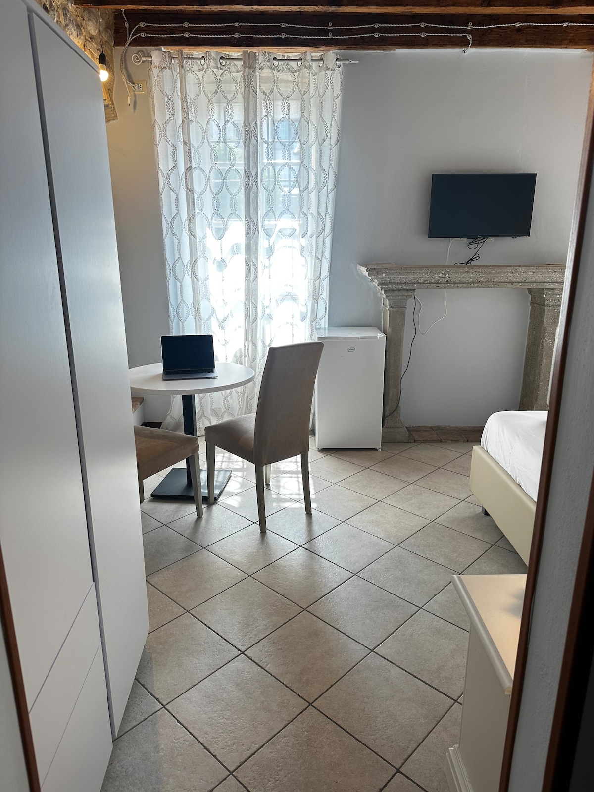 Cette chambre accueillante combine le charme rustique des murs en pierre avec des touches de design contemporain. Le lit double vous invite à vous reposer après une journée de randonnée ou de promenade le long du lac. L’éclairage tamisé crée une atmosphère chaleureuse et intime, idéale pour ceux qui recherchent une escapade en amoureux. Salle de bain privée avec douche. Inclus dans le prix du séjour 2 billets pour l'entrée gratuite à la piscine avec le restaurant Ai Borghi (à 3 km de la chambre)