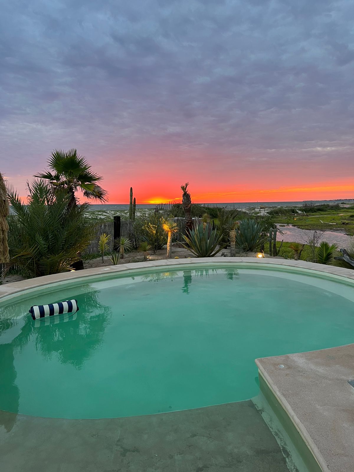 Vivez de la paix que l'on trouve quand la mer et le désert se rejoignent. Profitez de toutes les commodités qu'il vous offre dans ses différents domaines. Préparez pizza ou pain dans votre four en pierre, viande rôtie dans votre grand bar arrière tout en contemplant la beauté du mont. Passez des moments inoubliables dans la palapa à double hauteur tout en profitant des couchers de soleil. Permettez à vos enfants de se sentir libres tout en jouant dans les balançoires et la magnifique fontaine d'appartement.