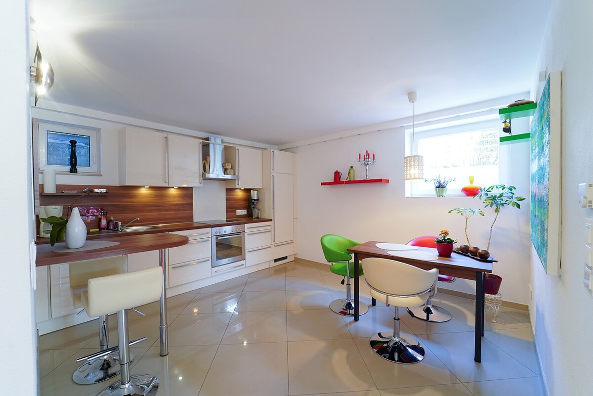 Situé à flanc de colline en face des ruines du château de Hohenurach à Bad Urach, au cœur du Jura souabe, l'appartement de 40 m² vous séduira par sa vue magnifique sur les montagnes directement depuis la maison. Il se compose d'un salon avec un canapé-lit pour une personne, d'une cuisine bien équipée, d'une chambre à coucher et d'une salle de bain et peut donc accueillir jusqu'à 3 personnes. Le logement est équipé entre autres d'une connexion Wi-Fi haut débit et d'une télévision.