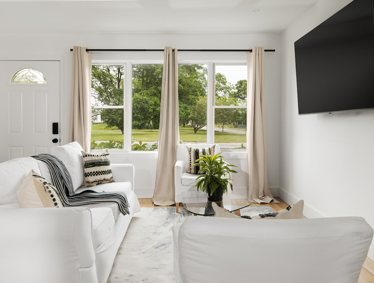 Modern Farmhouse Oasis | Private Pool | Near Hamptons & North Fork Escape to a stylish sanctuary where modern design meets pastoral charm. Set on a private, one-acre land, this farmhouse is a masterclass in coastal living. Enjoy sun-drenched lounge areas, a sparkling pool, and the constant, cooling luxury of Atlantic breezes. Inside, the home offers a seamless blend of contemporary interiors, and high-speed Wi-Fi—perfect for a peaceful retreat or a "work-from-anywhere" getaway.