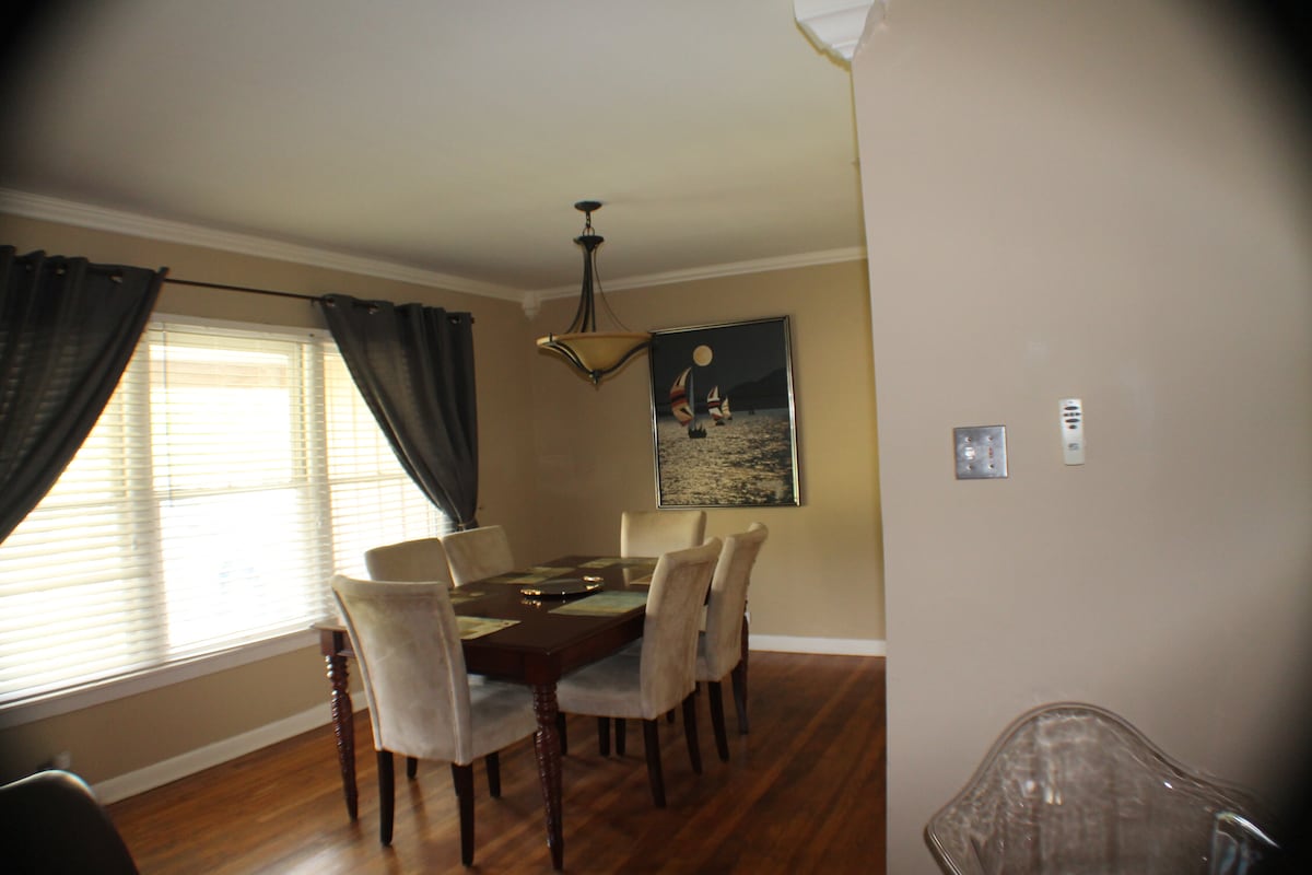 Votre famille sera proche de tout lorsque vous séjournerez dans ce logement familial, adapté aux enfants et aux animaux de compagnie, situé au centre. À quelques minutes de tout ! C'est un 3 chambres 1 salle de bain avec 5 lits. Télévision connectée Fire de 65 pouces dans le séjour. Wi-Fi gratuit par fibre à 393 Mbps. Deux téléviseurs intelligents Fire 55” supplémentaires. Abonnement Netflix inclus ! Réfrigérateur de grande taille et lave-linge et sèche-linge intelligents de grande taille. 5 unités de climatisation avec commandes pour chaque pièce, barbecue au gaz, foyer et immense patio et cour. Lit pour bébé, chaise haute, jeux de société et jeu de poche !