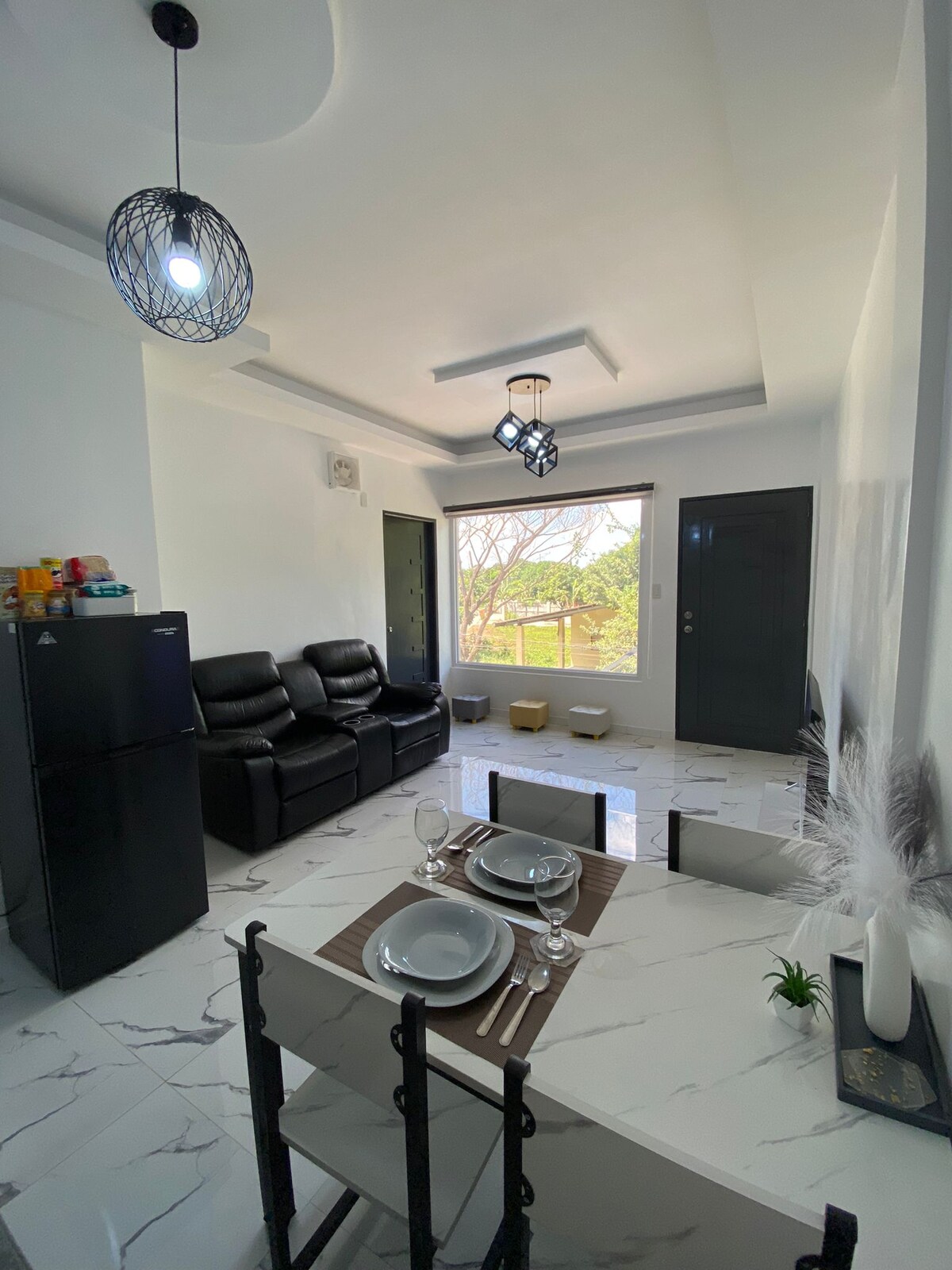 Hôtel de séjour de style loft de 52 m² Unité climatisée 2,5 HP (2F) et 1,5 HP (GF) CARACTERISTIQUES principales : Kitchenette entièrement fonctionnelle Réfrigérateur et four à micro-ondes Cuisinière à induction avec hotte Ensemble complet d'ustensiles de cuisine Toilettes avec douche Table à manger 4 places Chambre : idéale pour 4 personnes (lit double et canapé-lit semi-double) Unli-Billiards Arcade (2 php = 3 minutes) Écran Android TV : Netflix, YouTube, etc. Jeux de société, cartes, etc. Mini Karaoke Mini bar