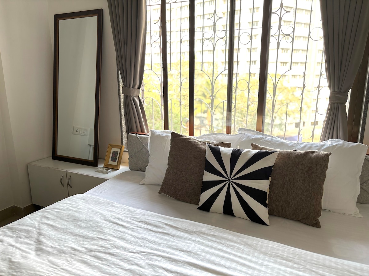 Bienvenue dans votre retraite moderne de 1 chambre près de BKC ! Avec son design minimaliste, son grand espace de travail, ses options de divertissement et ses équipements de base, il répond aux besoins des voyageurs d'affaires et de loisirs ! Caractéristiques : ★ Grand bureau de travail ★ Wi-Fi haut débit gratuit ★ Télévision connectée ★ Tata Sky avec toutes les chaînes HD Bar ★ de son ★ Four à micro-ondes/réfrigérateur Friteuse ★ à air comprimé ★ Purificateur d'air ★ Purificateur d'eau Réservez dès maintenant et découvrez le mélange parfait de modernité et de confort !