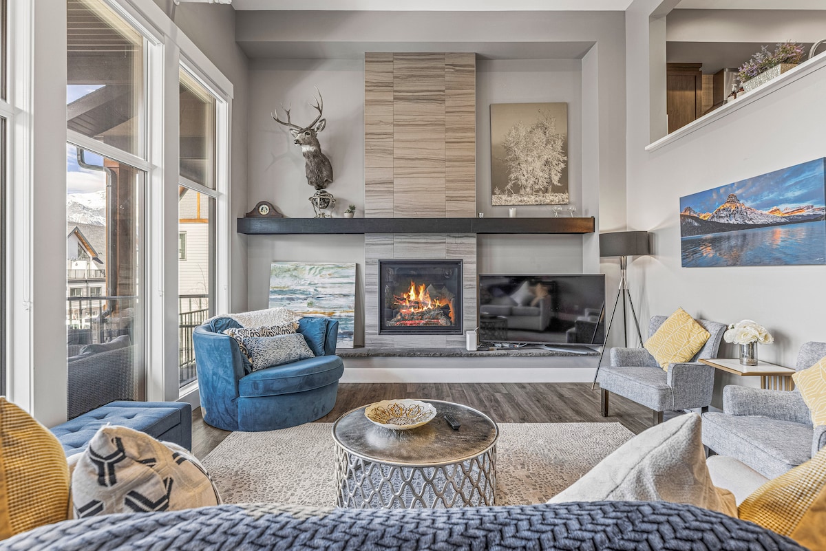 Welcome to your 2,650 sqft spacious vacation home in The Mercer, Canmore! This bright and airy corner unit is filled with natural light. Enjoy stunning mountain views from every room—including all balconies and even the bathrooms! 😊 Each bedroom features its own private ensuite bathroom with cozy in-floor heating. ⭐️ Hosted by an experienced and responsive Superhost. 🚗 Two private parking spots. 🔇 No train or highway noise. ✨ Check out our 5-star reviews from guests around the world!
