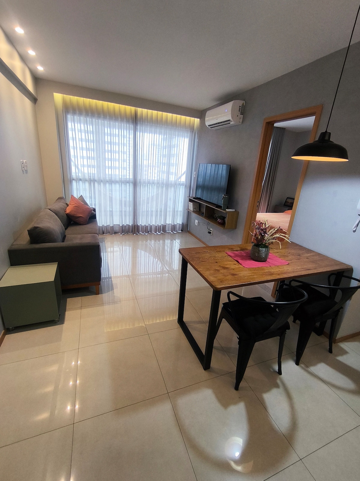 AP 1/4 moderne, confortable, dans un endroit sûr à proximité d'un supermarché, d'un centre commercial, de bars/restaurants, de sites touristiques étage élevé, avec vue, bâtiment avec 2 piscines, salle de sport, hydro, sauna INCLUS - Lit et serviettes ; - 1 place de parking - Cuisine complète ; - Lave-vaisselle - Lave-linge et sèche-linge - télévision connectée 65" c/ Netflix - Wi-Fi. Alexa (domotique) - Cafetière Oster primalatte - Barbecue électrique -Cond Ar dans la chambre et le salon - Ferro de Passar - Secador