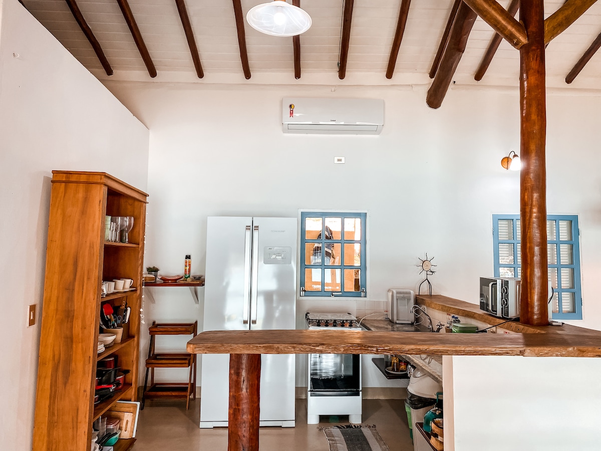 Un bungalow construit artistiquement dans les moindres détails... une baignoire ouverte sur la forêt avec un plafond en verre donne l'impression d'être immergé dans la nature, avec un figuier centenaire en face et de nombreux oiseaux... intime et accueillant en connexion avec la nature en contact avec cette zone de réserve de la forêt atlantique. L'autre douche chaude est sur la terrasse ouverte sur la forêt et est délicieuse de jour comme de nuit avec le ciel étoilé et le clair de lune.