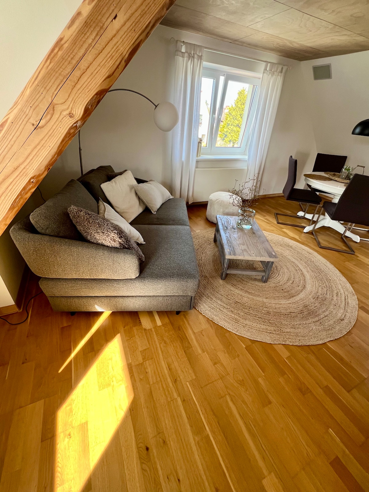Salut ! Nous proposons notre appartement en tant que logement privé à louer. Il dispose d'une entrée privée, d'une cuisine, d'une salle de douche et d'un salon / chambre à coucher. Il est relié à notre maison par un escalier intérieur. En haut, il y a une porte qui est fermée. Le logement dispose d'une entrée indépendante, nous te permettons une remise des clés flexible dans le temps. Serviettes, draps, wifi, bouilloire, lave-vaisselle, cheminée et terrasse disponibles. Parking gratuit sur la propriété.