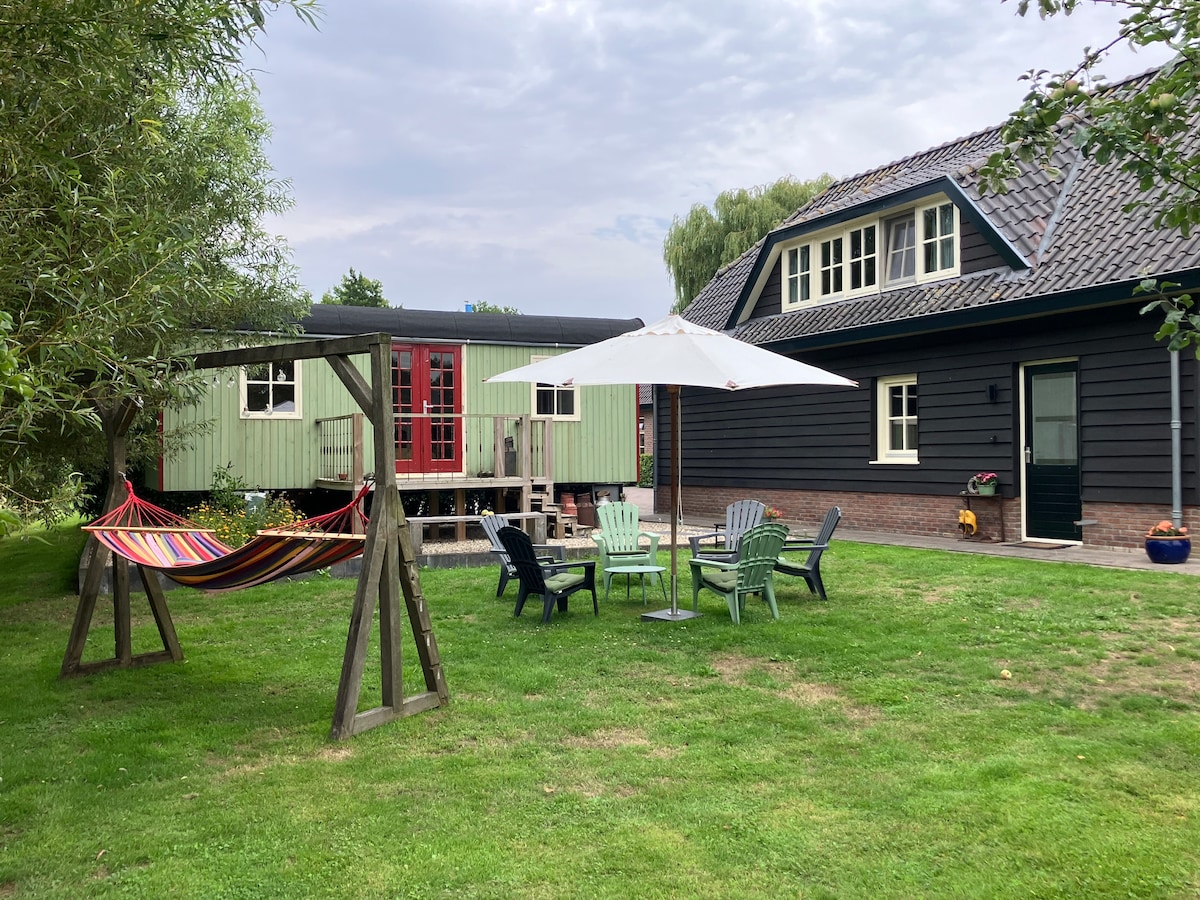 Magnifique chalet avec une belle vue large sur les prairies. Il y a de la place pour 2 adultes et peut-être 1 bébé jusqu'à 1 an. Il y a un lit de camp pour le bébé. C'est un charmant chalet confortable à deux pas du centre animé et pittoresque de Voorthuizen. Voorthuizen est la porte d'entrée parfaite du Veluwe en raison de son emplacement pratique. Une bonne base pour de nombreux sentiers de randonnée et de vélo et il y a beaucoup à faire dans la région.