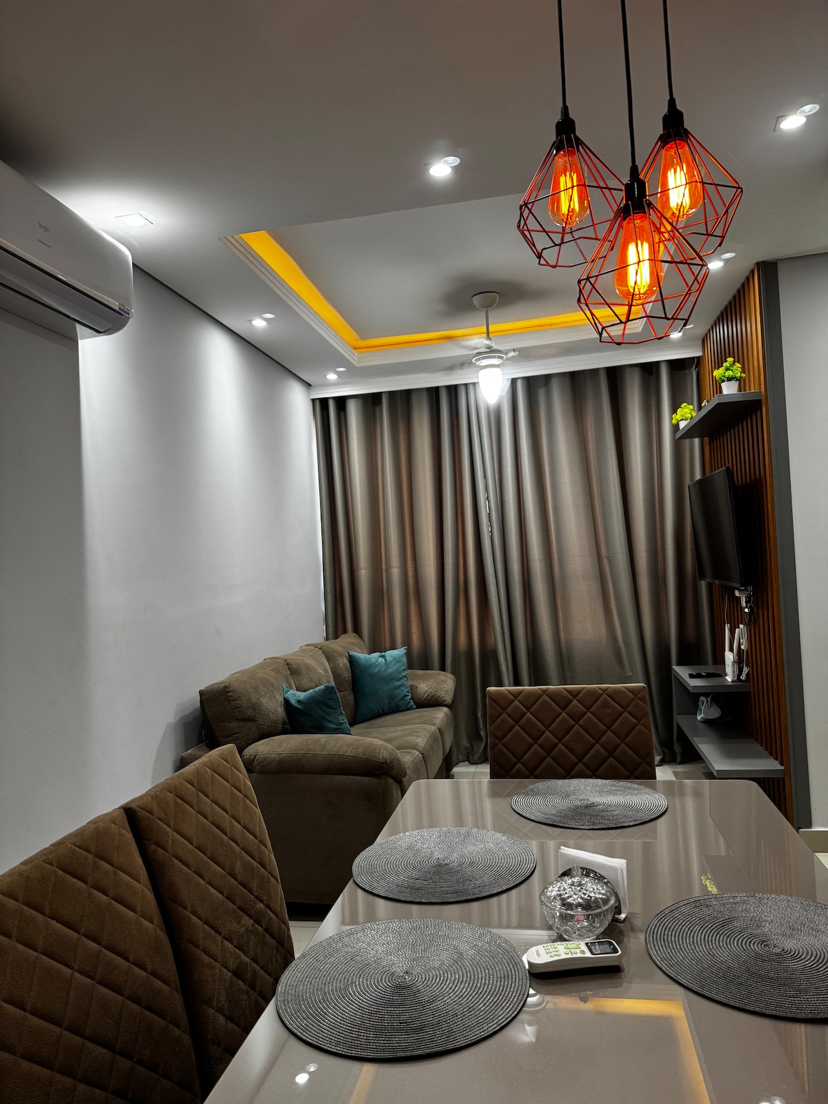 Détendez-vous en famille dans ce logement au calme. Environnement climatisé, proche de la salle de sport, de la pharmacie, de la station-service, du marché et du centre. En plus du mobilier, l'appartement dispose également d'un mixeur, d'une cafetière, d'une bouteille de café, de casseroles, de couverts, de verres et d'assiettes, de tasses, de café, de sucre, de linge de lit, d'une serviette de bain, d'oreillers et de couvertures, tout pour votre confort sans vous soucier de quoi que ce soit, et il y a aussi une épicerie disponible à l'intérieur de la copropriété pour mieux répondre à vos besoins.