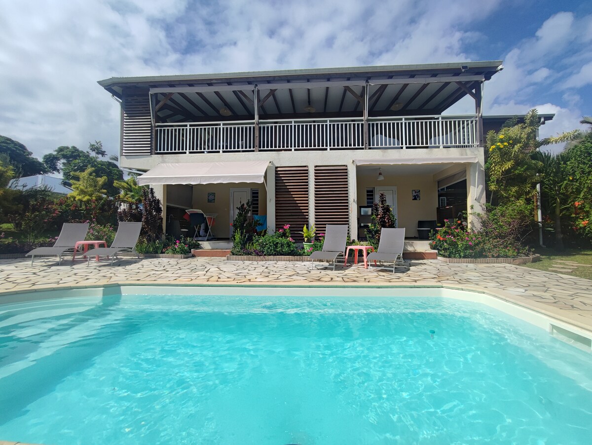 La Nantillaise, gîte Cocotier vue mer, piscine