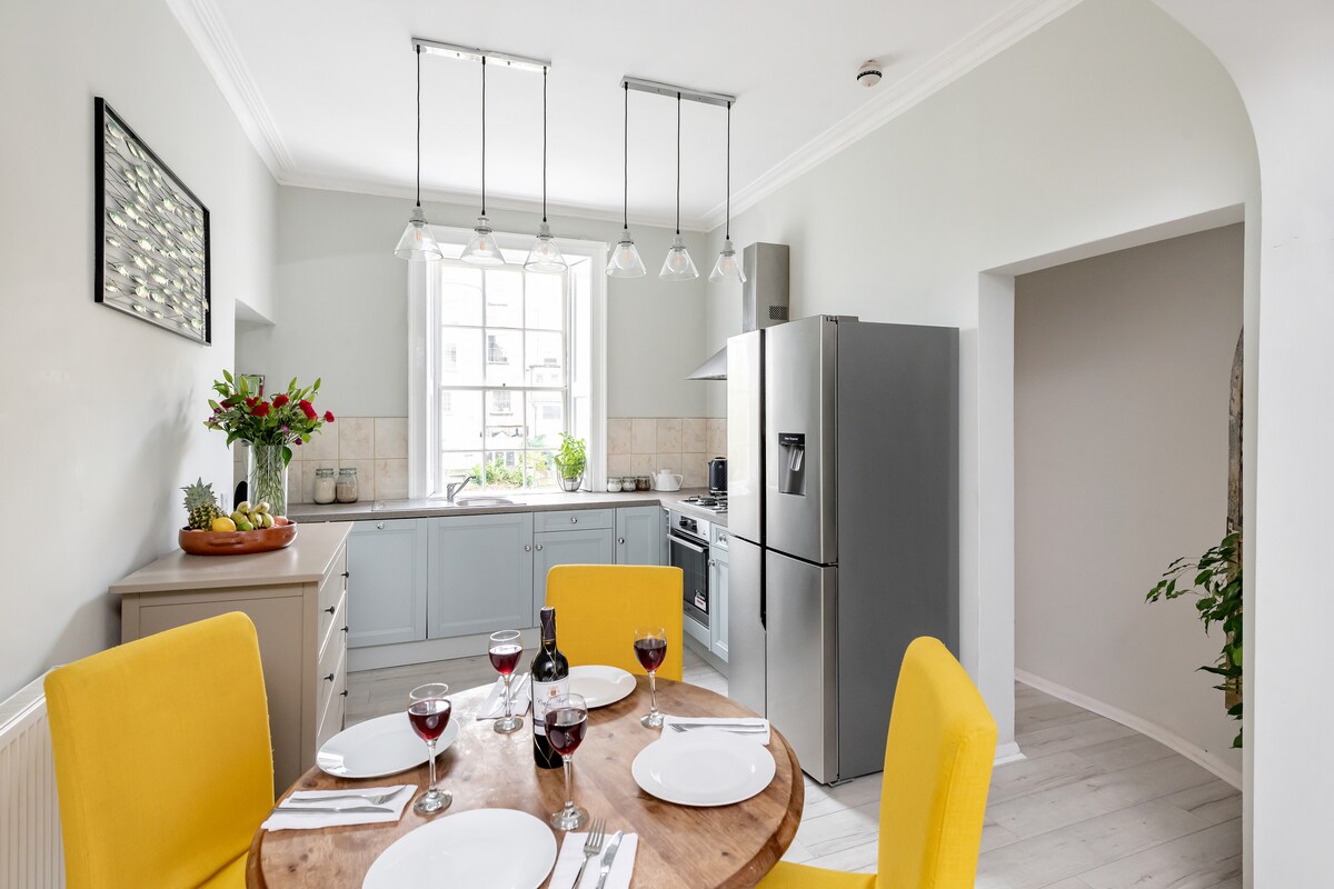 Gilda's Garden - Appartement 1 dans le bâtiment 4 de Norfolk Buildings, est en fait une maisonnette, occupant deux étages de ce bâtiment classé Regency Terraced. Il s'agit d'un appartement spacieux avec un salon élégant et un coin repas avec cuisine ouverte, il y a des toilettes et un lavabo sur le demi-palier, et au niveau du jardin, il y a deux chambres avec salle de bains privative. Le couloir en marbre du rez-de-chaussée mène au long jardin, qui est un espace agréable lors d'une journée ensoleillée, avec beaucoup de sièges extérieurs.