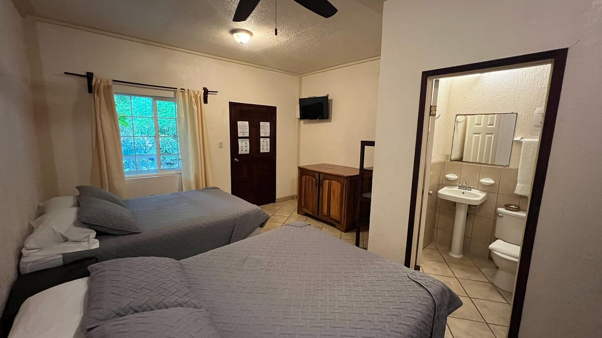 Profitez du confort et de la commodité de notre tout nouvel hôtel de charme, idéalement situé sur la rue principale animée de West End, Roatán. Que vous soyez ici pour une aventure de plongée, une escapade romantique ou simplement pour vous détendre, nos chambres modernes de style insulaire offrent tout ce dont vous avez besoin pour un séjour inoubliable. À quelques pas des boutiques de plongée de classe mondiale, des bars au coucher du soleil, des plages de sable blanc et des favoris locaux. Vous êtes au cœur de l'action, mais dans un cadre paisible et sécurisé pour des nuits reposantes.