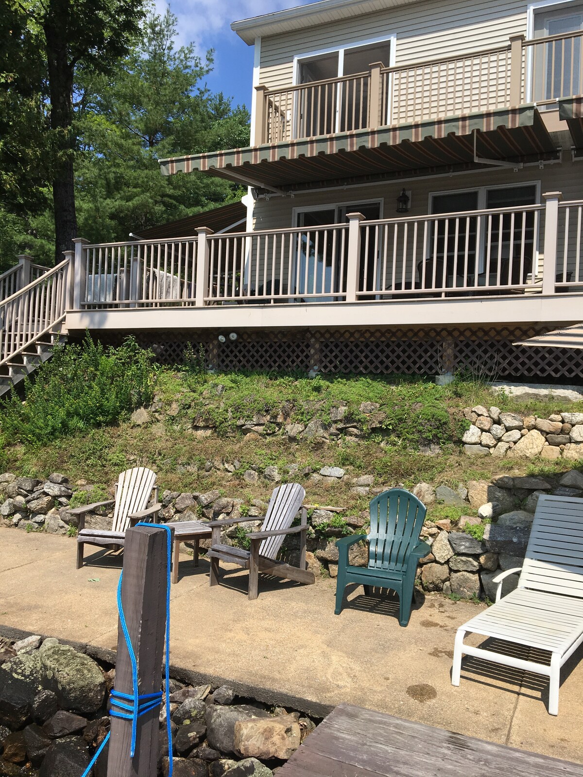 Niché entre la montagne Gunstock et le lac Winnipesaukee, le chalet Hidden Creek est votre escapade idéale toute l'année. Cette maison aérée et ensoleillée dispose de hauts plafonds, d'une cuisine récemment rénovée, d'un foyer au gaz, de la climatisation centrale, d'un lit King Size et d'une buanderie. Sortez sur une toute nouvelle terrasse spacieuse construite pour les repas et les divertissements en plein air, descendez jusqu'au foyer pour des histoires et des s'mores et profitez du coucher de soleil tout en écoutant les sons tranquilles de notre ruisseau caché.