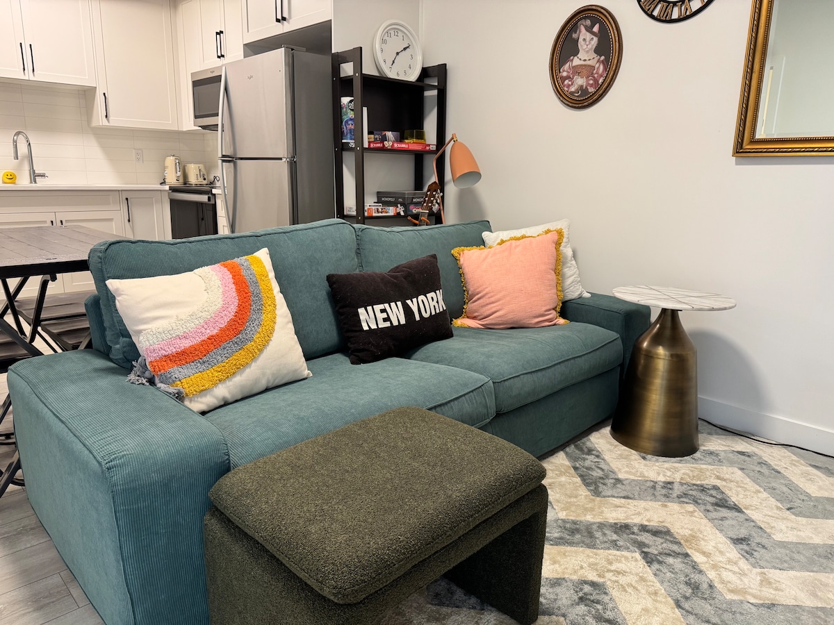 Détendez-vous avec toute la famille dans cette suite de sous-sol paisible et privée. Profitez du confort de votre propre entrée séparée, d'un salon confortable, d'une chambre avec un lit queen-size, d'une buanderie attenante et d'une vue sur une cour arrière magnifiquement aménagée. La kitchenette est équipée d'une table de cuisson à induction, d'un four à micro-ondes et d'un mini-réfrigérateur, parfaits pour préparer des repas légers pendant votre séjour. Idéal pour les voyageurs en solo, les couples ou les petits groupes : peut accueillir jusqu'à 4 personnes.