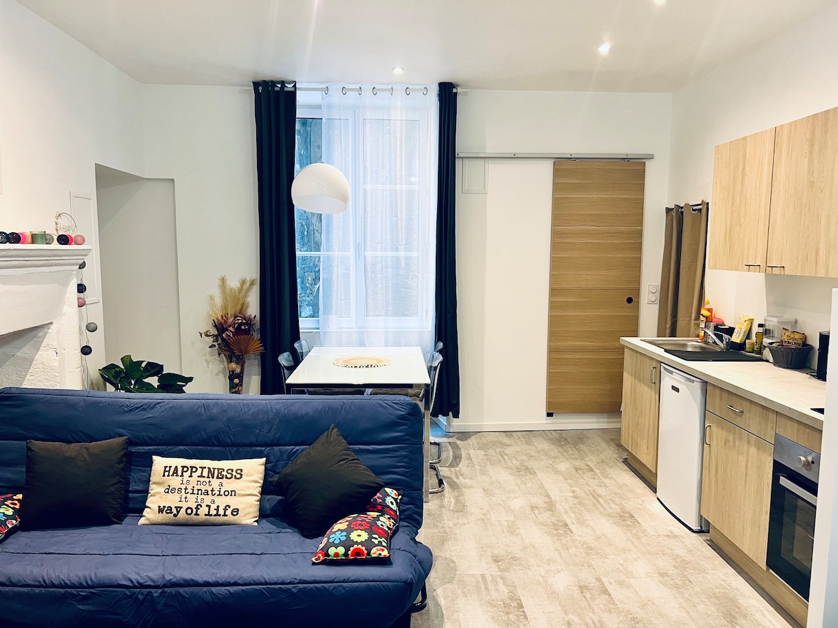 Découvrez notre studio moderne et rénové au cœur de Riom. Situé au rez-de-chaussée, à proximité immédiate des commerces et bars, tout est accessible en 3 min à pied. Profitez d'un lit double 140x190 cm pour un sommeil de qualité, d'un salon avec TV et table pour quatre, pour des moments de détente. La cuisine et la salle de bain, entièrement équipées, rendront votre séjour confortable et plaisant. Eléments forts:climatisation centrale et un garage (rare à Riom). Bienvenue au nid douillet.