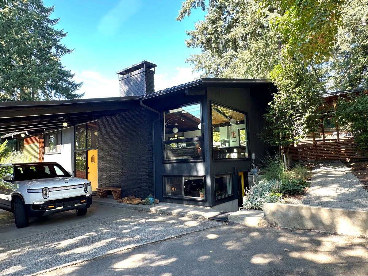 Bienvenue dans notre maison des années 1950 – un véritable chef-d'œuvre inspiré par l'emblématique Frank Lloyd Wright. Niché sur une retraite privée luxuriante de 1/3 acre, ce joyau architectural se trouve à quelques minutes seulement de Multnomah Village et de Gabriel Park. Plongez dans la beauté intemporelle de cette merveille du milieu du siècle entièrement rénovée, où de hauts plafonds voûtés en bois à poutres apparentes ornent chaque pièce du rez-de-chaussée. Cette maison est parfaite pour les groupes d'amis, les familles ou les retraites d'entreprise. Remarque : 4 chambres, 2 salles de bain, 2 cuisines.