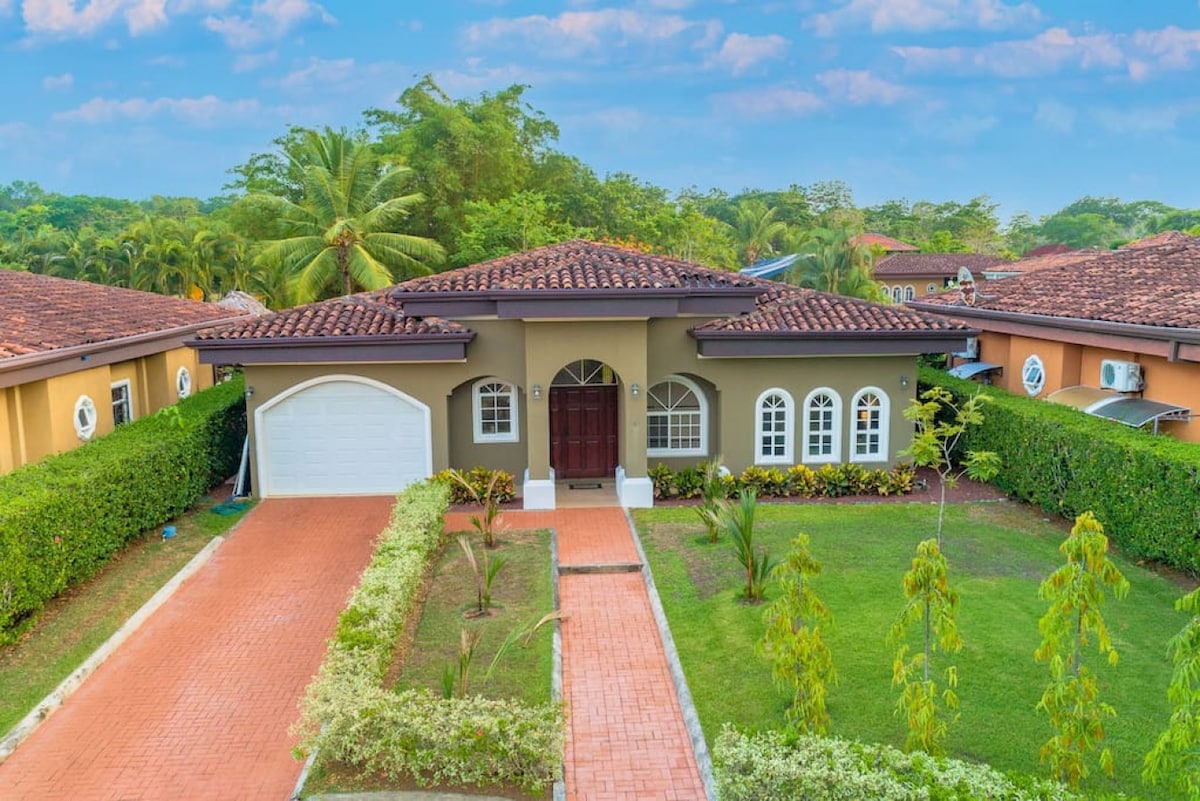 Communication privée fermée à Playa Hermosa Jaco Vous pouvez marcher jusqu'à la plage. Garde de sécurité privé, beaux jardins verts et vastes. Parfait pour une excellente escapade, vous pourrez rester avec votre famille ou un groupe d'amis. La maison comprend l'option d'une suite parentale , d'une chambre double pour les voyageurs/bureau. Dispose d'un espace social vivant avec des portes vitrées rétractables pour l'expérience en plein air, de grandes terrasses autour de la piscine privée à débordement avec cascade, d'une cuisine entièrement équipée et d'un barbecue