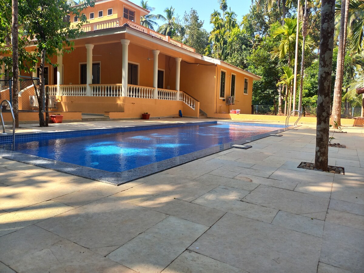 Retraite sereine dans la jungle 5BHK – piscine privée | Escapade dans la nature | Travail parfait ! Découvrez un joyau caché du centre de Goa, une villa privée indépendante nichée entre Loutolim et Verna, offrant une retraite dans la jungle pour les amoureux de la nature et les amateurs de paix. Que ce soit pour une escapade relaxante, des vacances amusantes ou un travail avec une vue panoramique, cette villa a tout pour plaire . ✔ Spacieux et accueillant 5BHK. ✔ Divertissements à Galore. Wifi ✔ rapide et adapté au travail. ✔ Piscine privée et piscine pour enfants. Gardien ✔ 24h/24 et 7j/7.