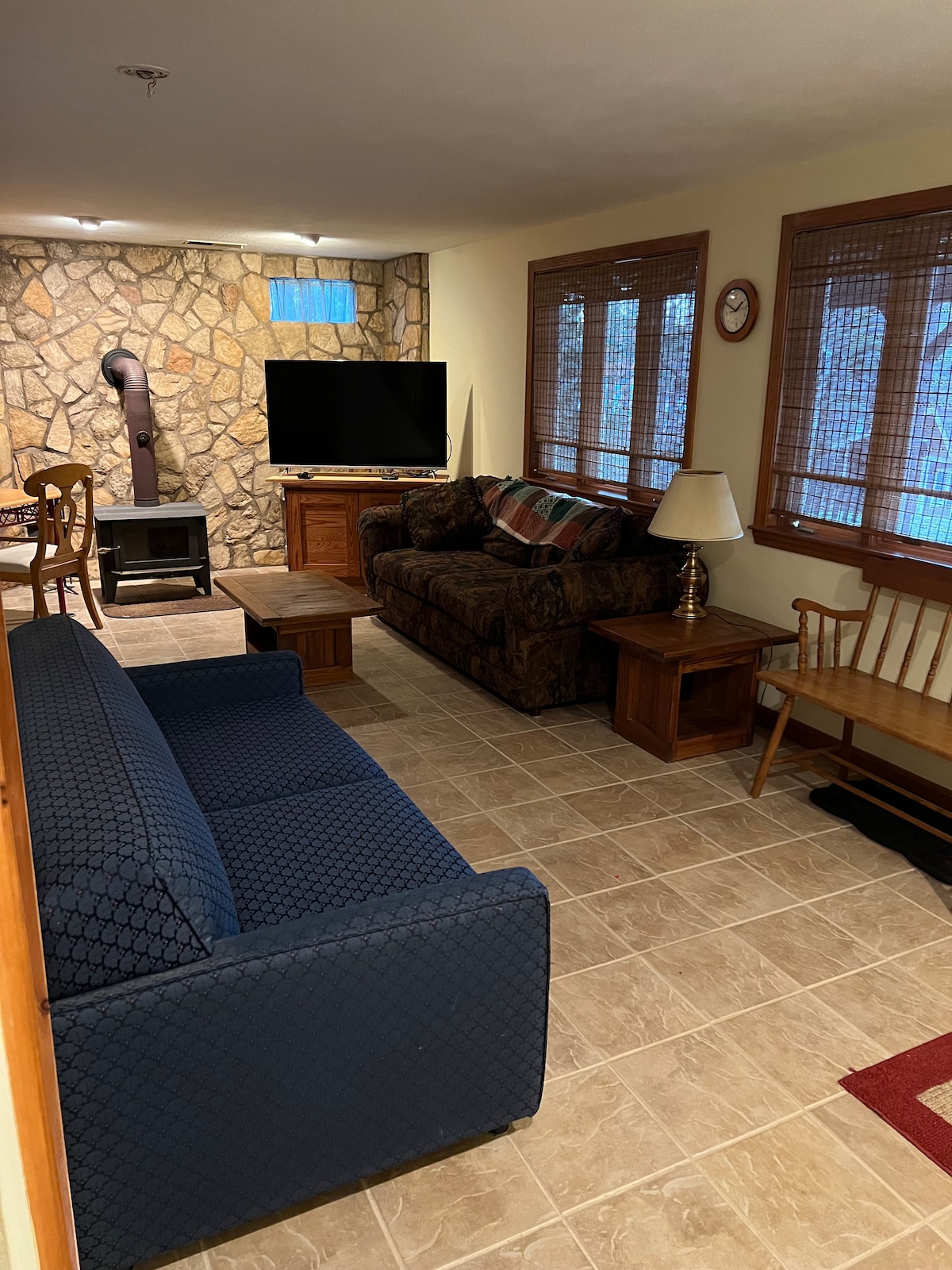 Réservez votre séjour dans un chalet cosy dans une communauté privée avec accès à la plage et au lac. Profitez de la rampe de mise à l'eau, de l'aire de jeux, des courts de tennis et du beach-volley. Le chalet est situé à 1,6 km du lac. Conduisez, marchez ou faites du vélo sur la route sans issue jusqu'à votre journée à la plage. Cuisinez sous le porche avant et profitez d'un feu dans la cour arrière privée. Il y a 3 chambres plus une chambre bonus avec un lit jumeau, un mini futon, une télévision connectée et une table de baby-foot ! Oreillers et couvertures inclus, doivent apporter des serviettes et des draps.