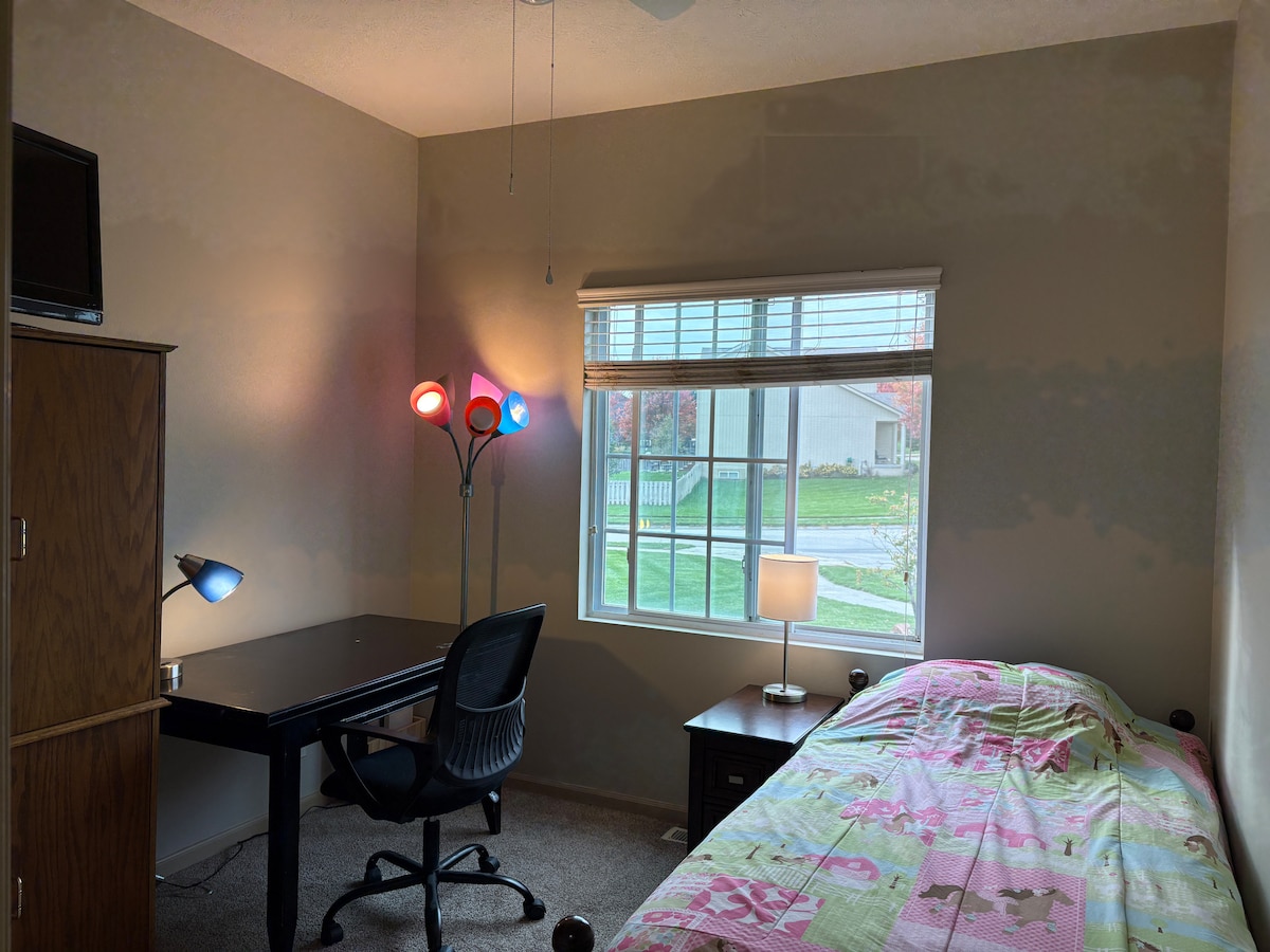 Entrez dans un espace privé et confortable. Détendez-vous en regardant la télévision au lit ou sur le canapé. Cet endroit fait partie de notre sous-sol, vous pouvez donc entendre la vie quotidienne à l'étage. Pour votre sécurité, une caméra Ring est installée à l'entrée et éclairera l'entrée lorsqu'il fait sombre. Le stationnement est sur la rue publique bien éclairée. Montez facilement notre trottoir Airbnb dédié, sans marches, marchez jusqu'à l'arrière de la maison. Vous serez dans un espace serein qui vous fera vous sentir comme chez vous.