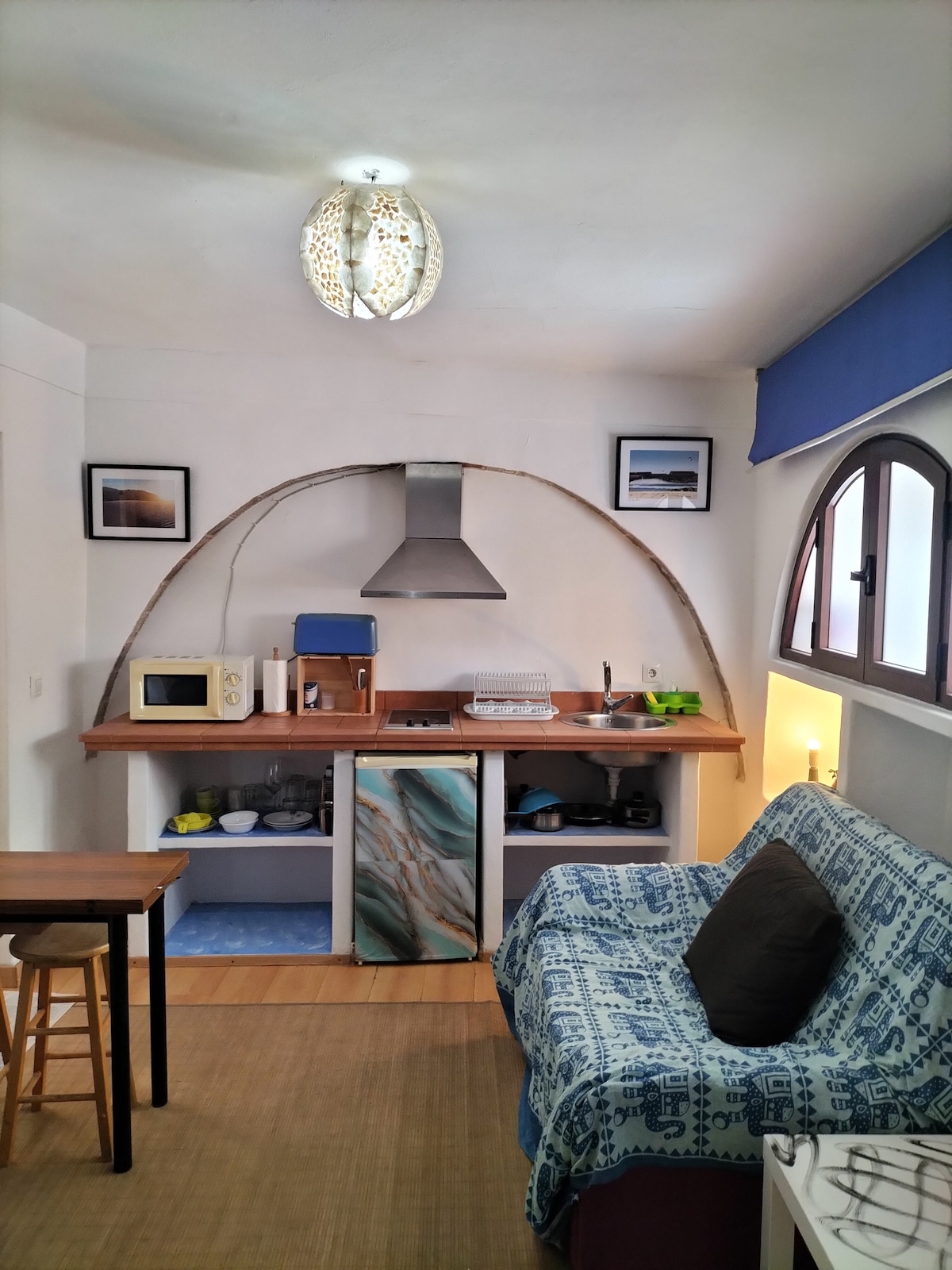 Appartement au cœur de Tarifa, situé au rez-de-chaussée d'une belle cour andalouse. Vous n'aurez pas besoin de voiture, car son emplacement est excellent, et vous pourrez vous rendre à tous les sites touristiques à pied (il est situé à 1 minute de l'entrée du port, à 2 minutes de la place du marché, et en 5 minutes à pied, vous serez sur la plage). Entouré de zones de restaurants et d'ambiance, ses vieux murs de grande épaisseur font un effet de grotte, isolant du bruit extérieur pour offrir un séjour de détente.