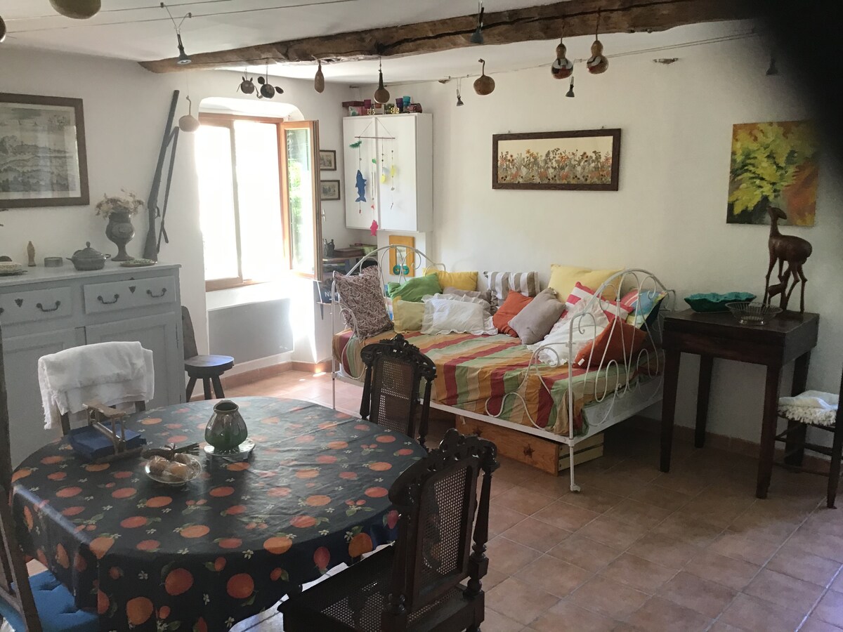 loue studio dans propriété dans un village calme à 20 KM de NICE (Cote d'Azur, FRANCE). Grand jardin, piscine. Petits chiens acceptés. Parking gratuit à proximité. Télévision, piscine, internet, machine à laver. dears guests please notice that our place is not convenient without a car to move. ideal for visiting Nice, and around : Menton, Monaco, Ventimillle, San Remo ( Italia) Antibes, Cannes.. from 30 to 50 mn .