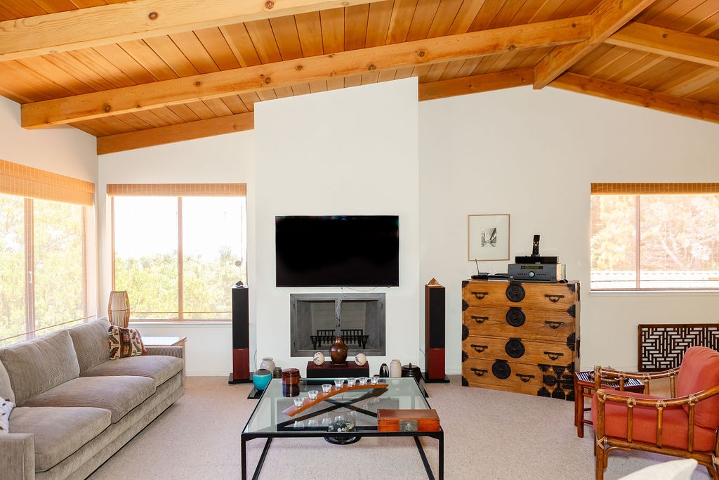 Vous recherchez une bonne dose de tranquillité et d'aventure à votre porte ? À plus de 100 marches de la route en contrebas, cette « cabane dans les arbres » est perchée au-dessus de tout et orientée horizontalement sur un terrain escarpé entre deux ruisseaux. La façade entièrement vitrée crée une vue spectaculaire sur les séquoias, le mont Tam et à travers le centre-ville de Mill Valley jusqu'à Blithedale Ridge. Ancrée dans le granit, la maison repose sur des murs de pierre faits à la main à partir de roches récoltées sur la propriété pendant la construction dans les années 1960. Vraiment un séjour unique en son genre.