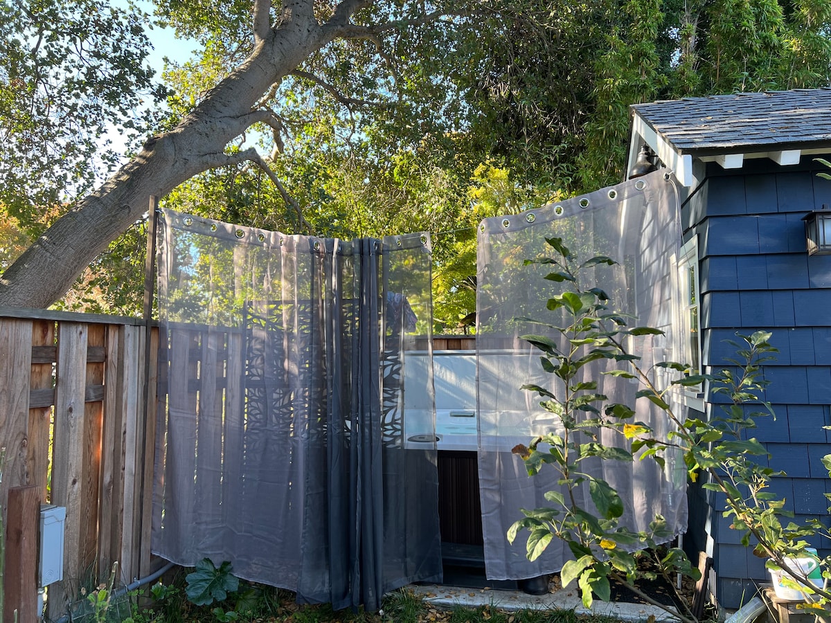 25 % DE RÉDUCTION POUR LES SÉJOURS AU MOIS ! 10 % DE RÉDUCTION POUR LES SÉJOURS À LA SEMAINE ! Chalet de jardin privé, calme et confortable ! Parfait pour une personne seule ou un couple, Wi-Fi rapide, espace de travail et cuisine avec tout ce dont vous avez besoin pour cuisiner vos repas ! Salle de bain spacieuse avec rangement. SEULS LES VOYAGEURS SONT AUTORISÉS DANS LA PROPRIÉTÉ Magnifique jardin avec jacuzzi, barbecue, salle à manger extérieure, ping-pong, arcade + Les marchés, les supermarchés, les restaurants et la gare BART sont tous à quelques pas seulement. Blanchisserie uniquement pour les séjours de 7 jours et plus.